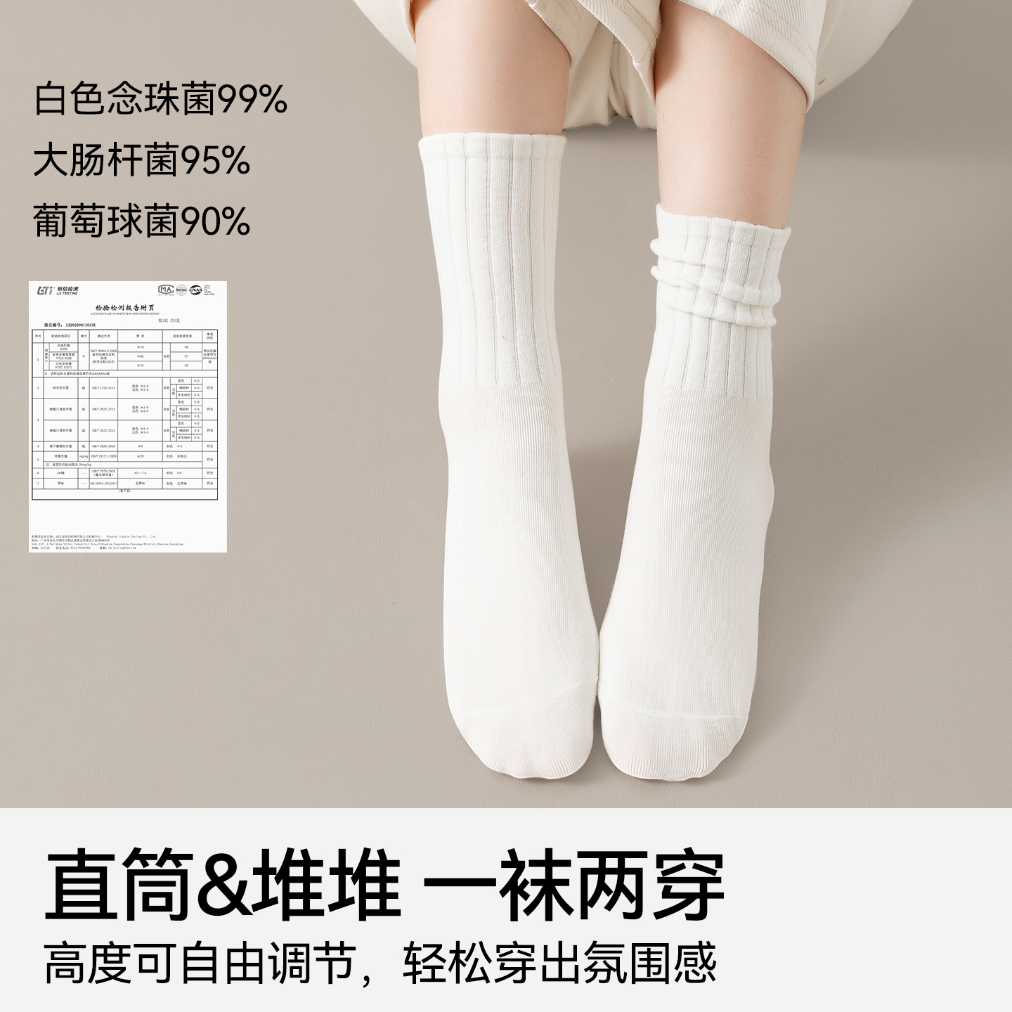 薄款 中筒袜小白袜防臭运动夏季 无骨短袜 纯棉袜子女春秋季 100%正品