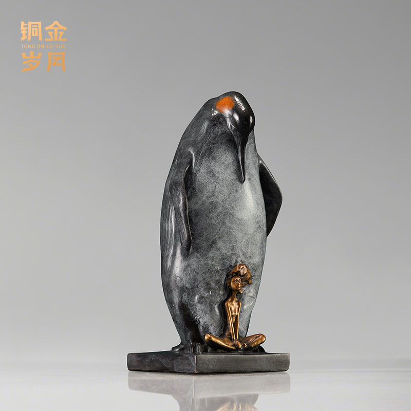 客厅玄关装 中古家居家装 全黄铜企鹅摆件工艺品新中式 饰品 共生