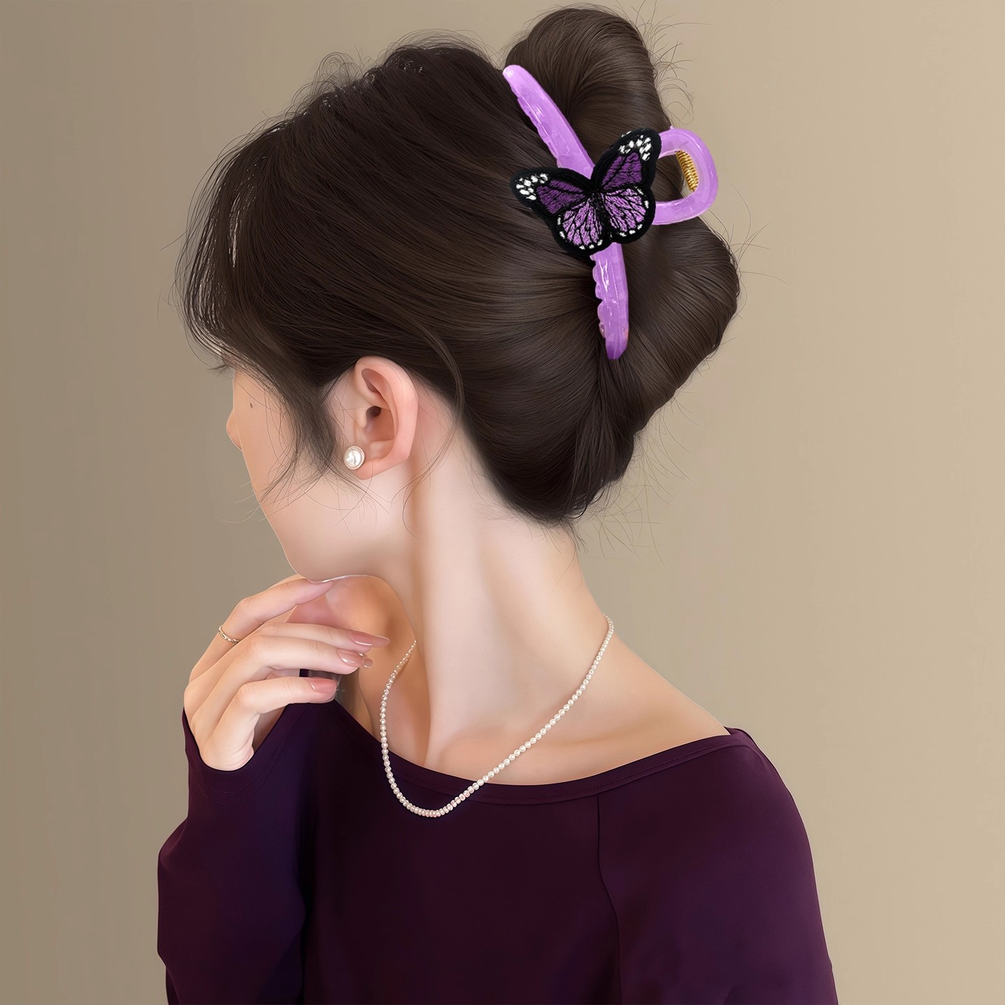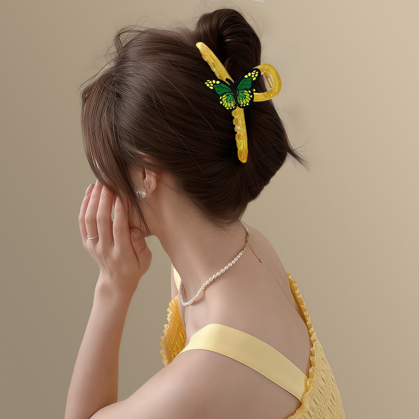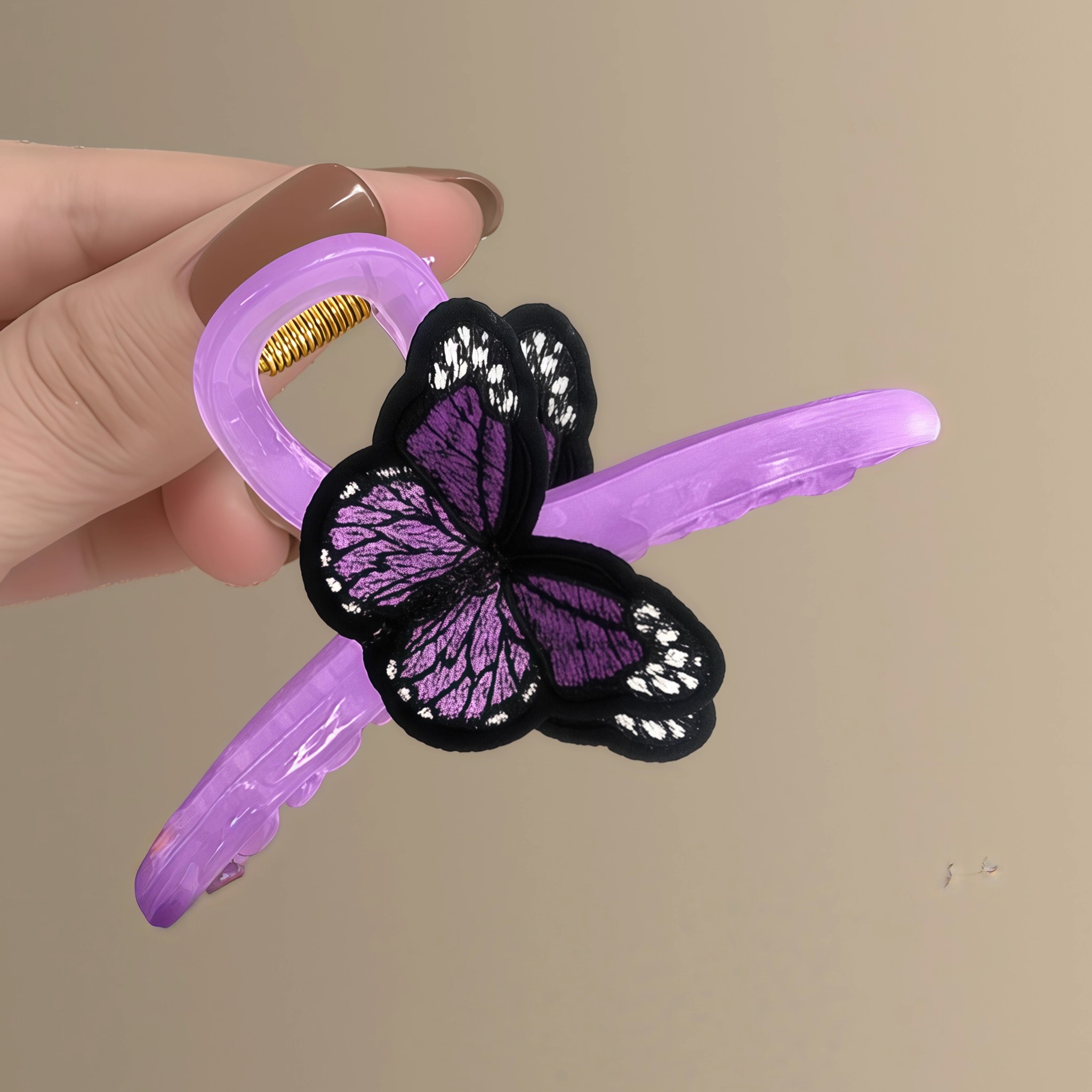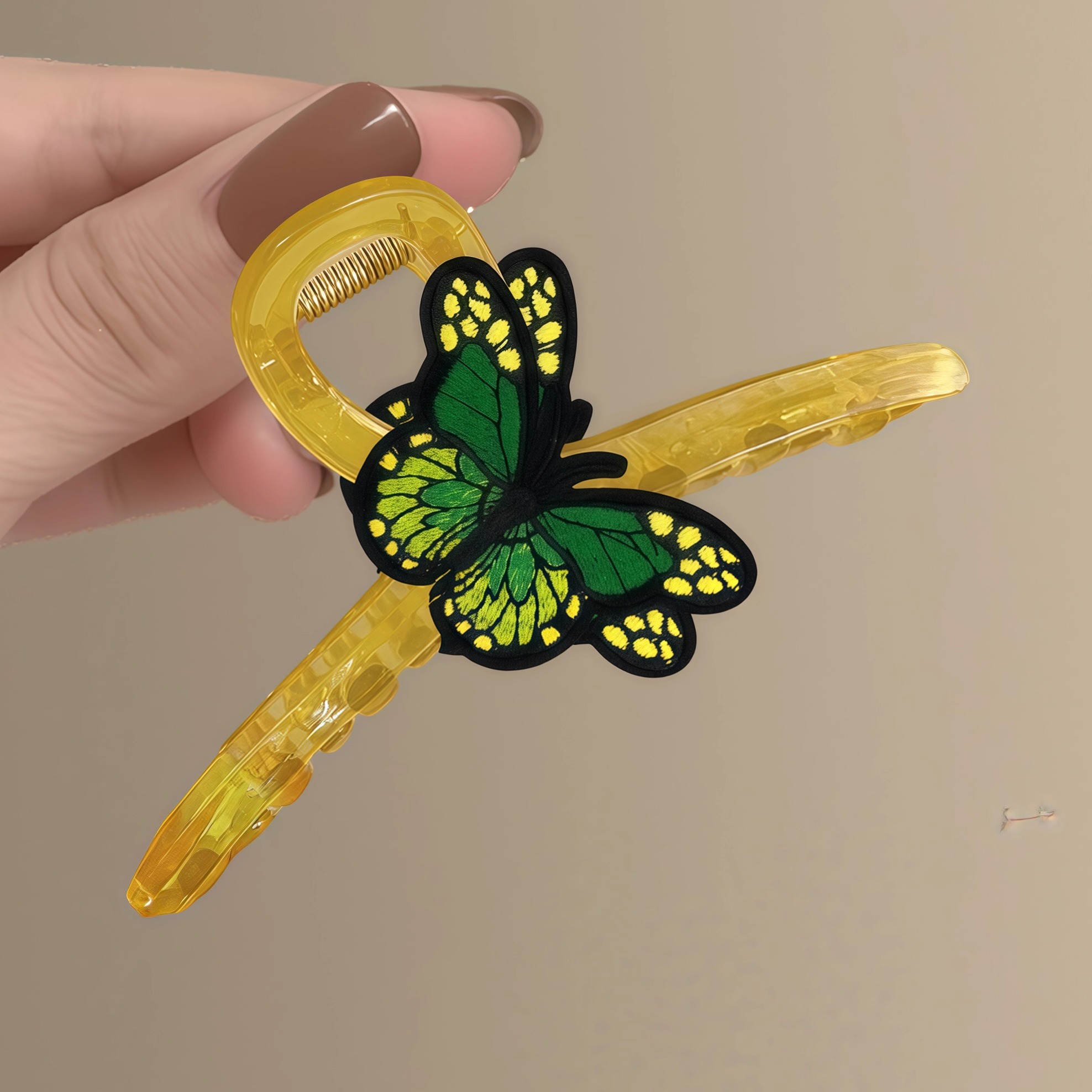 萤火绿 森系绿色蝴蝶刺绣抓夹女小清新后脑勺鲨鱼夹百搭盘发夹子