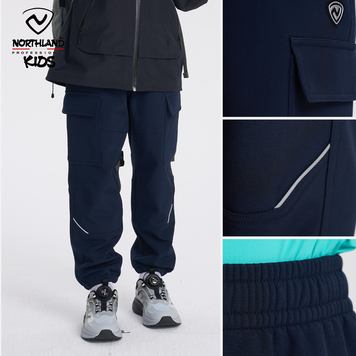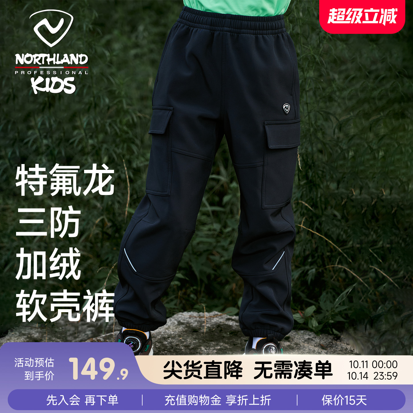 运动裤 男童防风防水户外工装 子 2025秋冬新款 诺诗兰儿童户外软壳裤