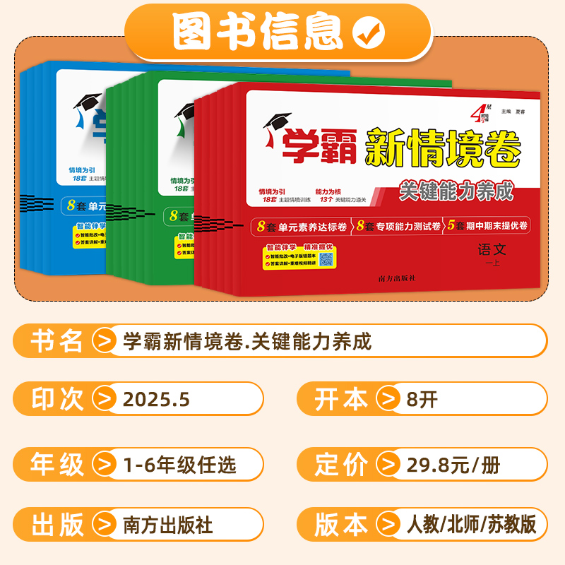 试卷测试卷全套4星情景卷电子版 单元 素养6年级人教 译林版 2025秋学霸新情境卷小学一二年级三四五六年级上册语文数学英语江苏教版