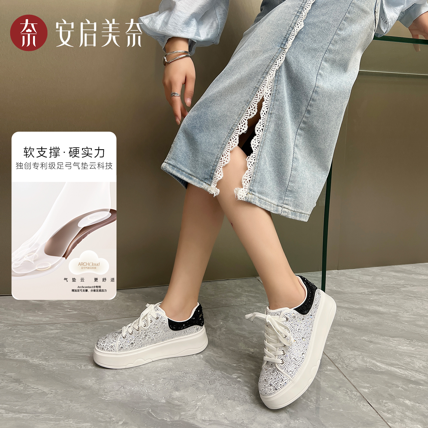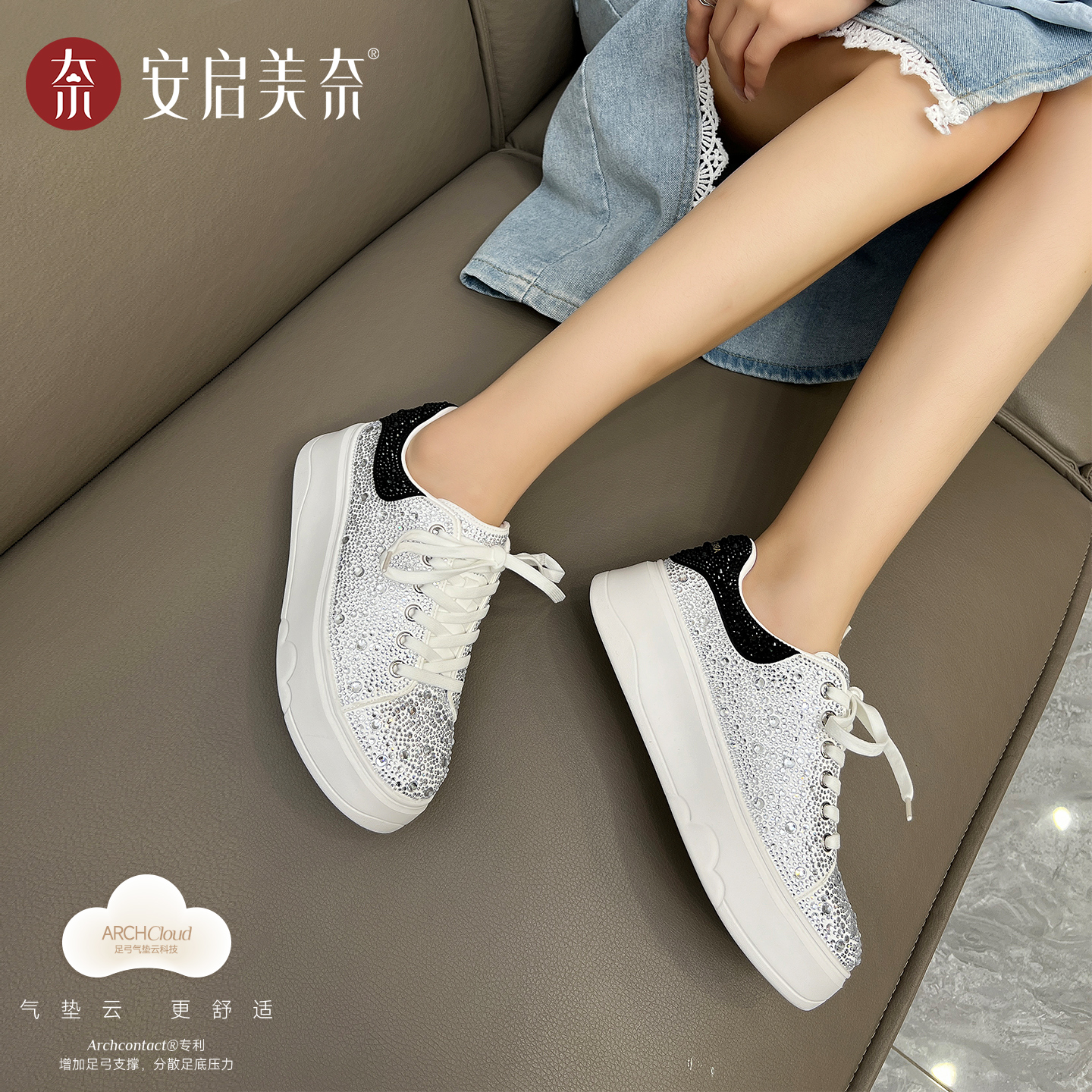 通勤鞋 安启美奈气垫云新款 百搭休闲女鞋 春秋季 烫钻休闲系带小白鞋