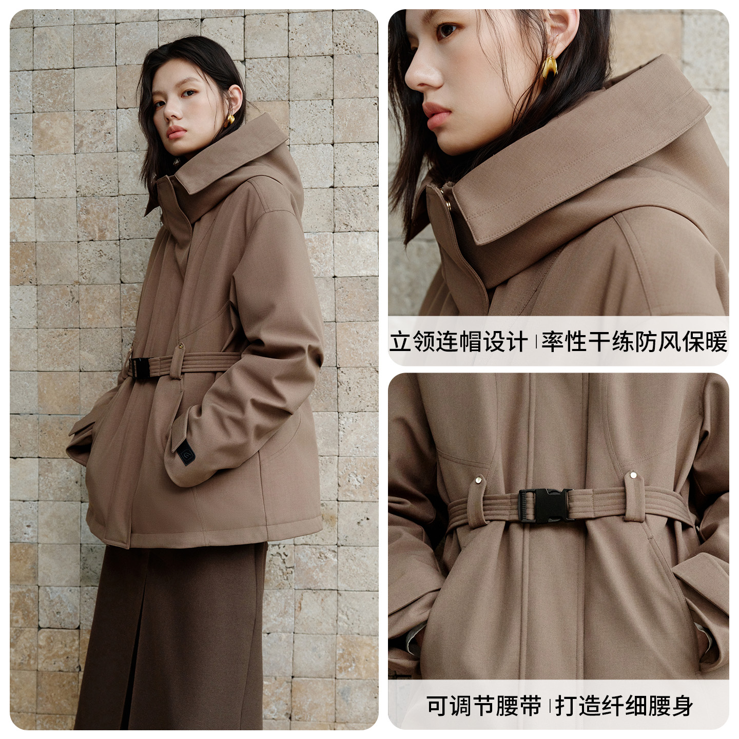 正品 气质连帽收腰鹅绒服爆款 羽绒服女士冬防风立领时尚 艾莱依短款
