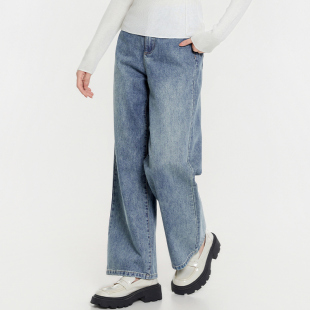 女直筒显瘦休闲裤 傲丝度宽松阔腿裤 加厚薄绒牛仔裤 新品 女2025冬装