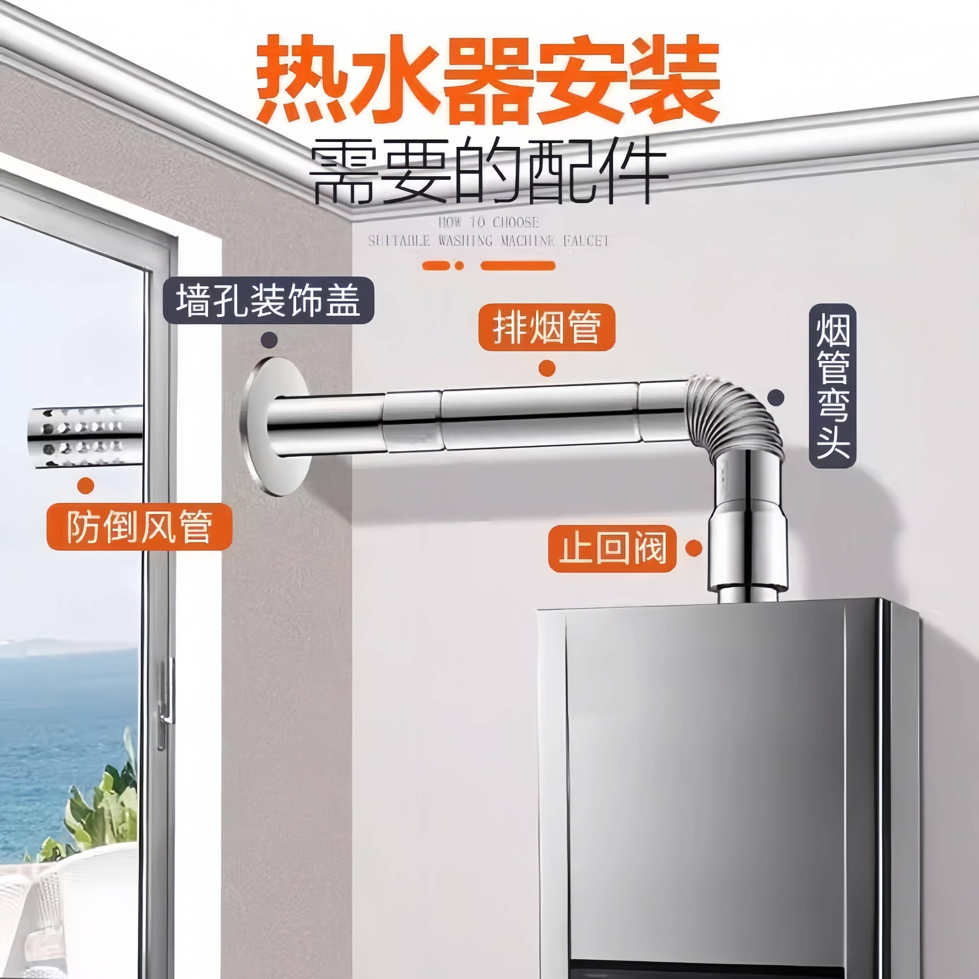 德国不锈钢排烟管燃气热水器60排气管加长延长强排烟囱管道配件管