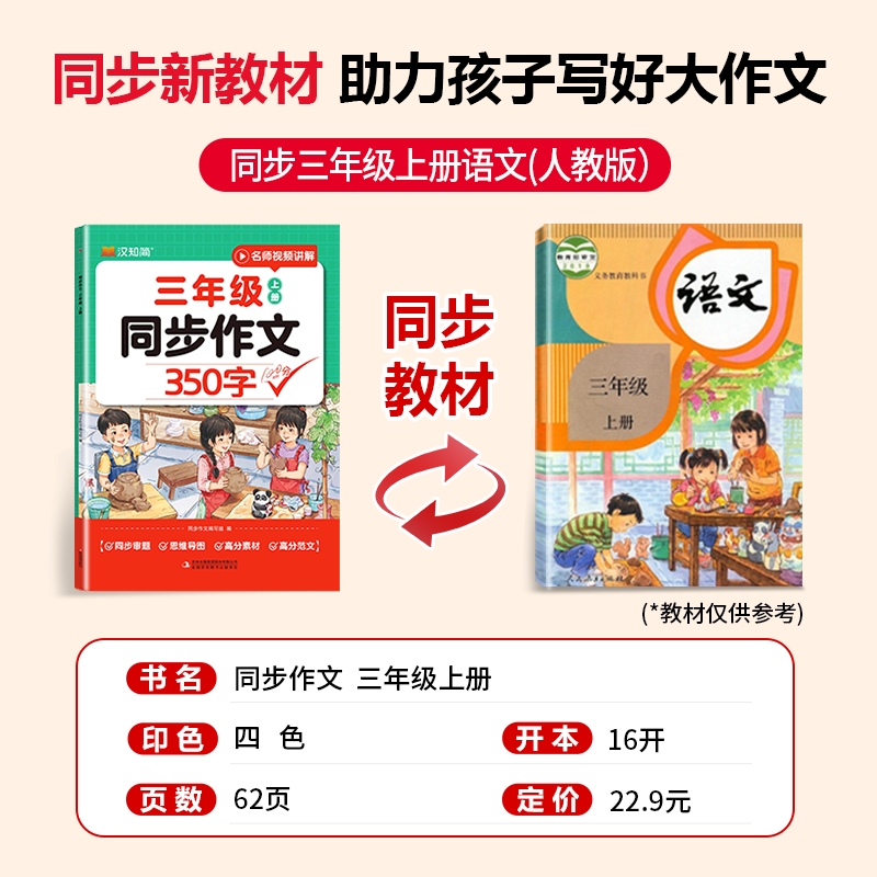 汉知简同步作文2025新版 小学生350字三年级阅读理解10分上册400字四年级强化看图写话写作素材作文训练官方旗舰店范文优秀