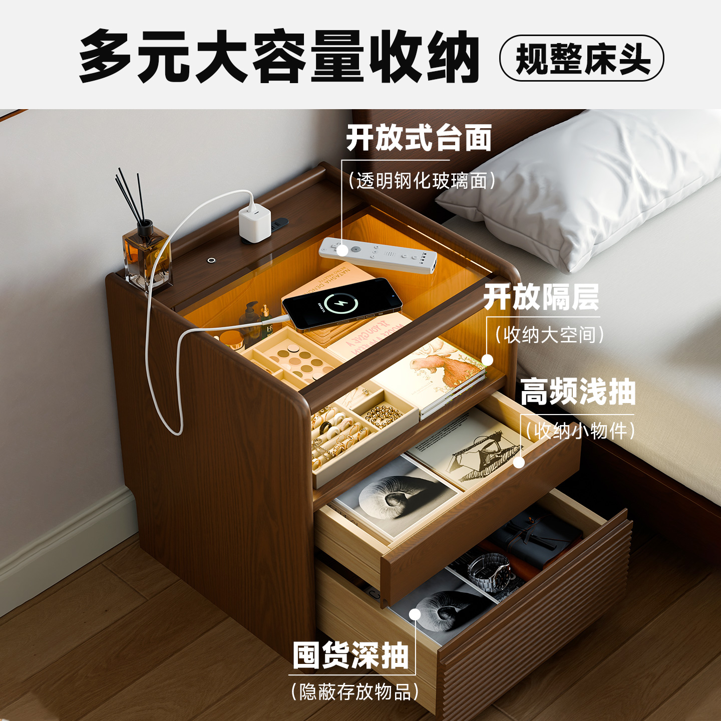 智能床头柜保险箱一体实木家用卧室轻奢高级感2025爆款 小型收纳柜