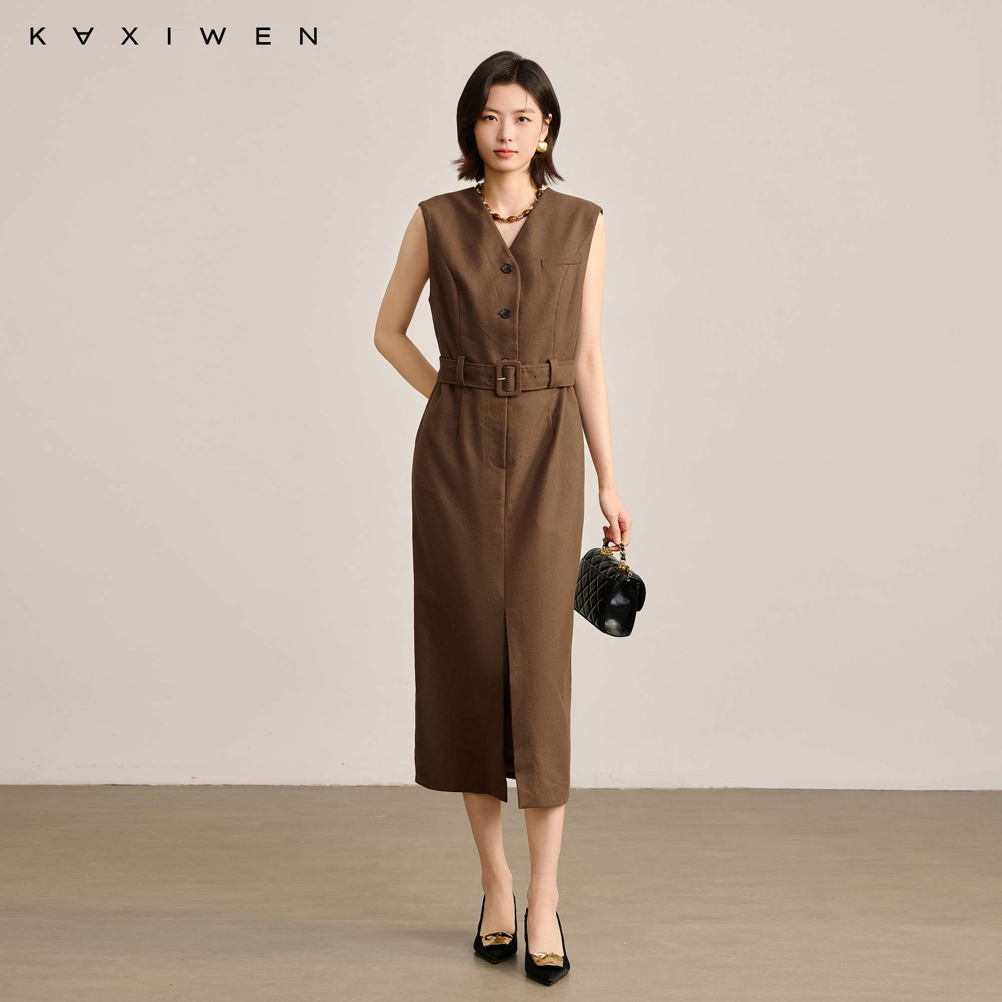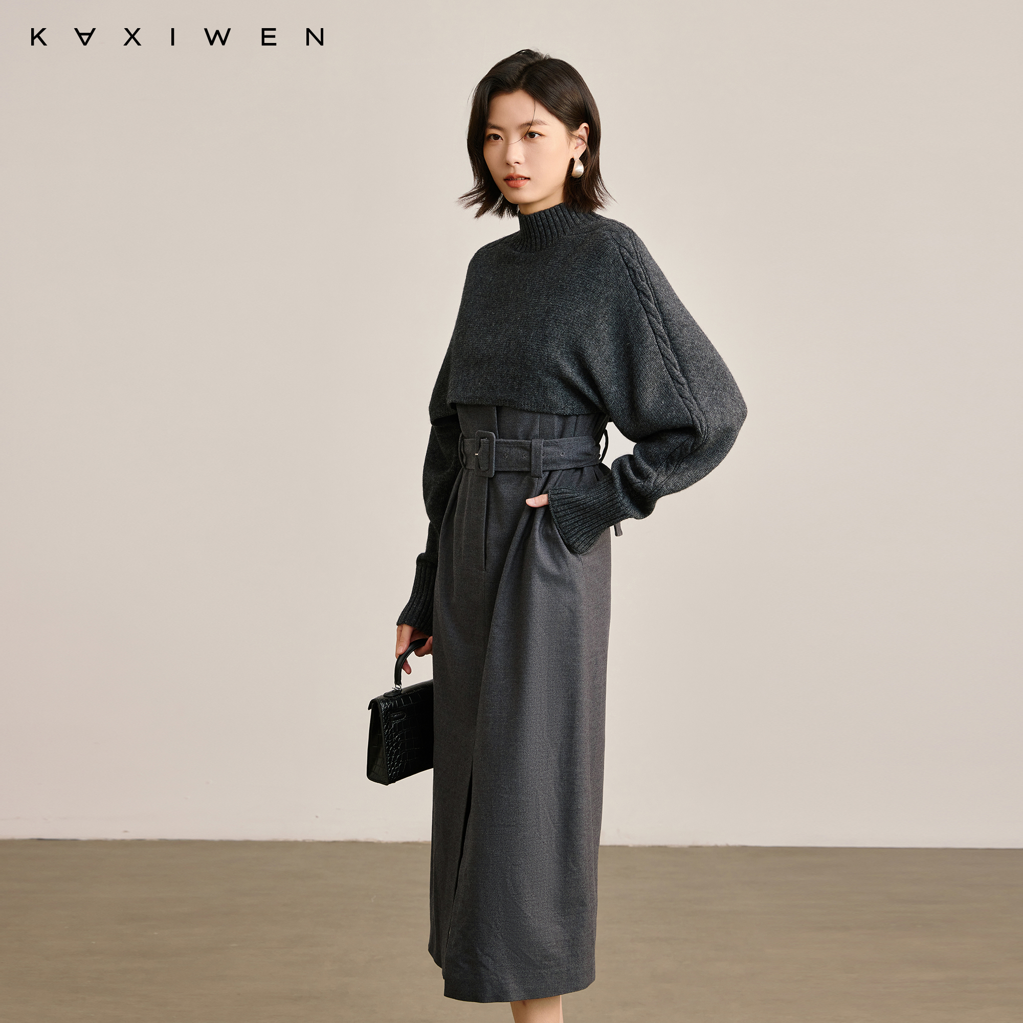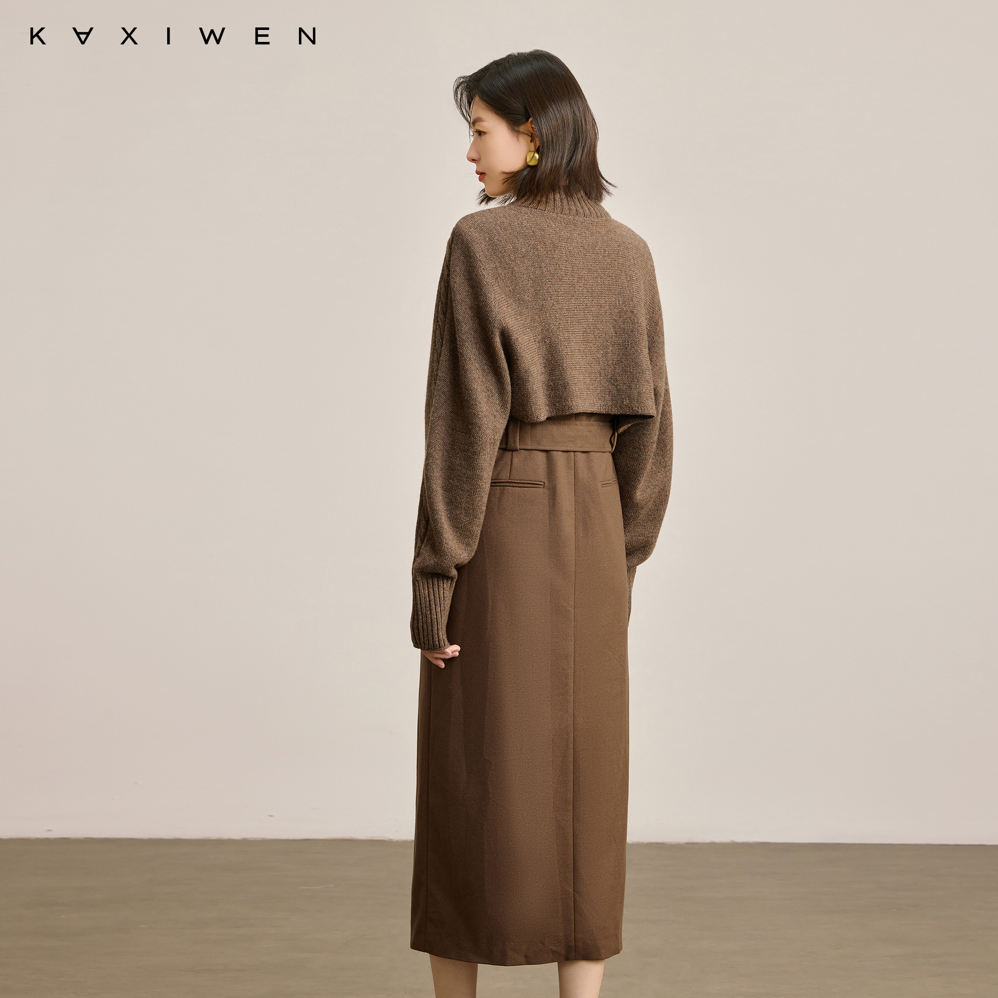 静奢风高腰裙摆开叉长裙 时尚 佧茜文老钱风气质套装 裙2025秋冬新款