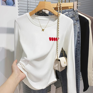 t恤女士不规则设计感下摆显瘦减龄上衣 正肩长袖 2025秋季 新款