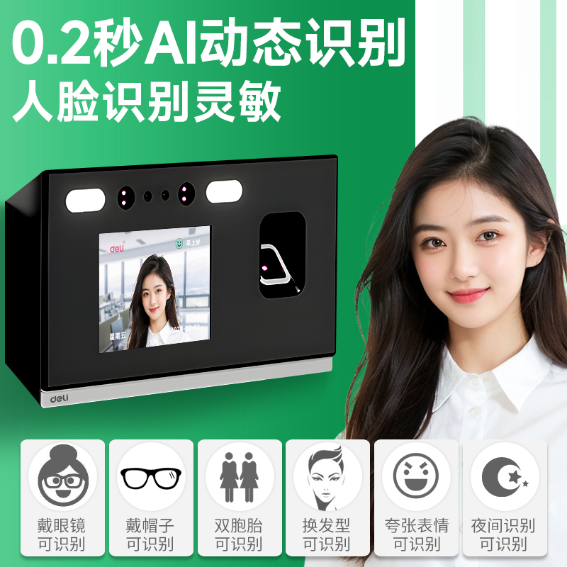 得力考勤机人脸指纹识别打卡机手机WIFI蓝牙考勤员工上下班签到机