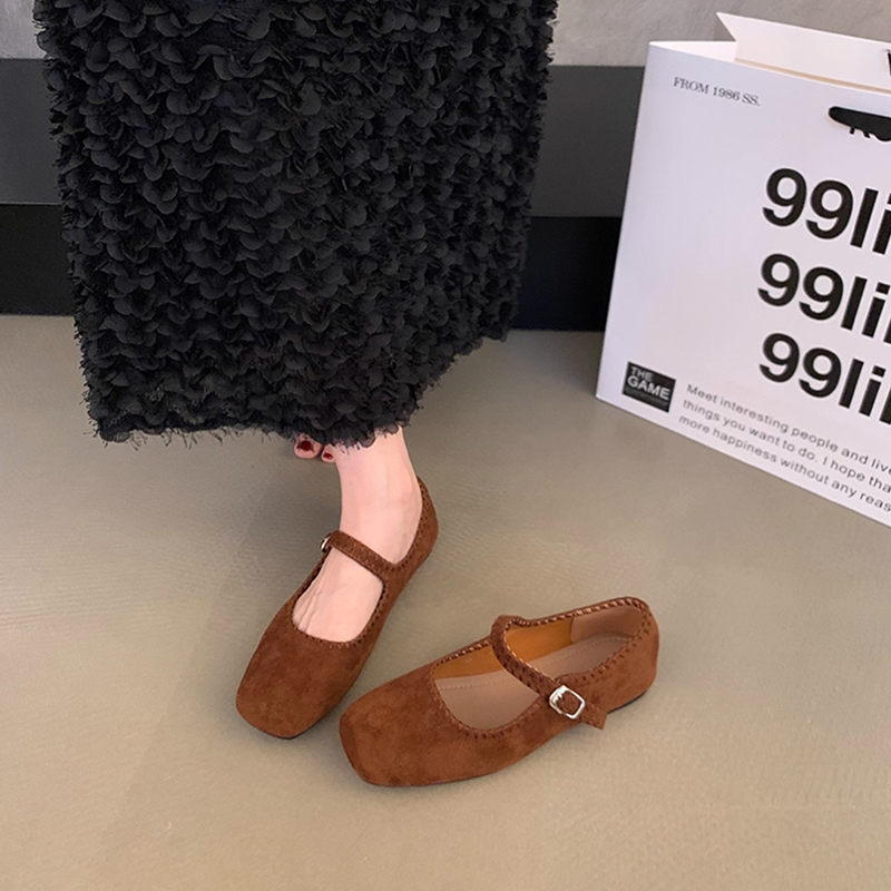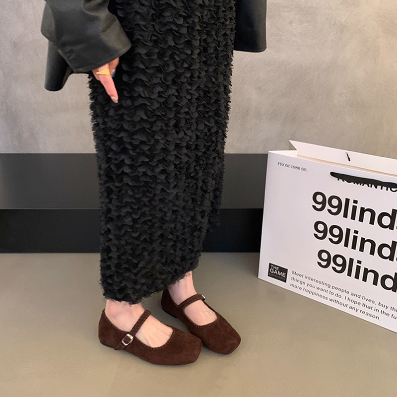 一字带平底配裙子芭蕾舞鞋 女2025新款 复古玛丽珍方头浅口单鞋 法式