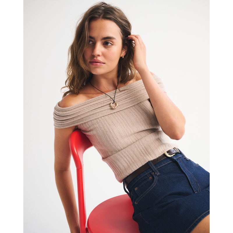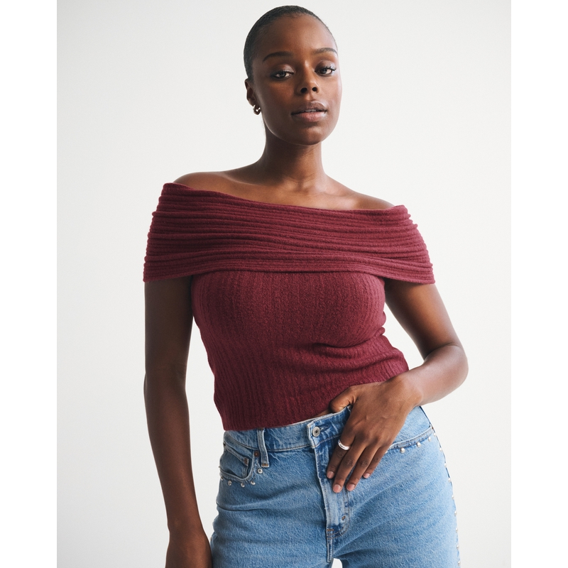 双11预售 一字肩露肩毛衣针织150 AF女装 修身 5358 25秋冬新款