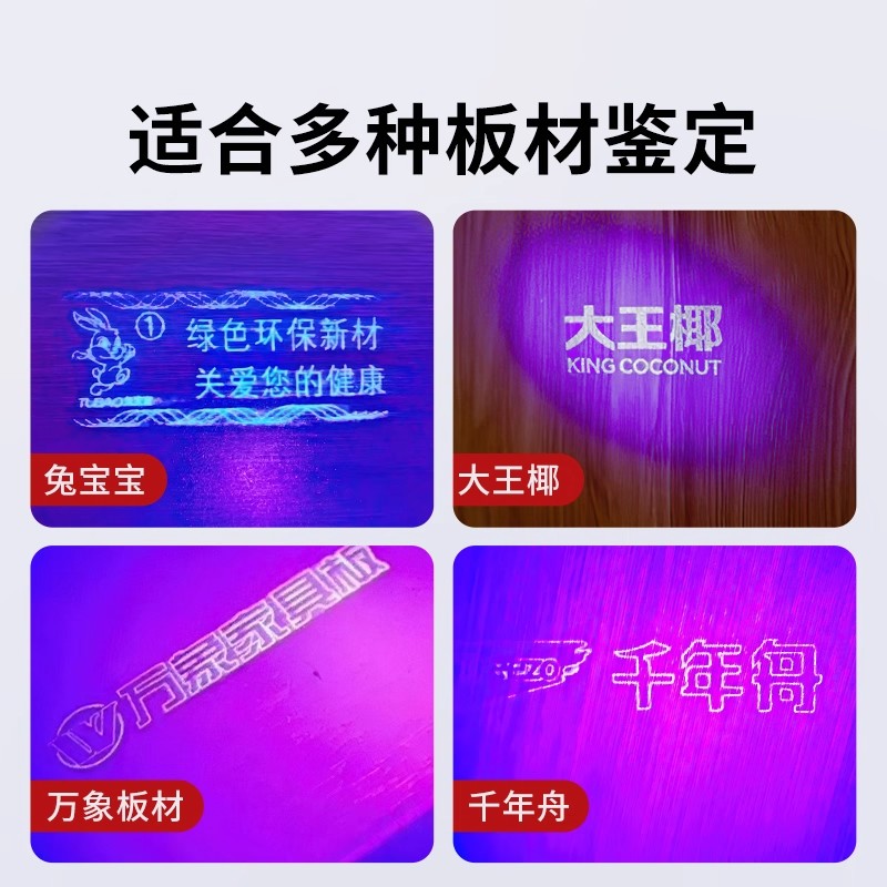 板材防伪紫光灯365nm蓝光手电筒鉴定验证板材验收专用照防伪标荧光剂检测笔紫外线测试笔照兔宝宝生态木板