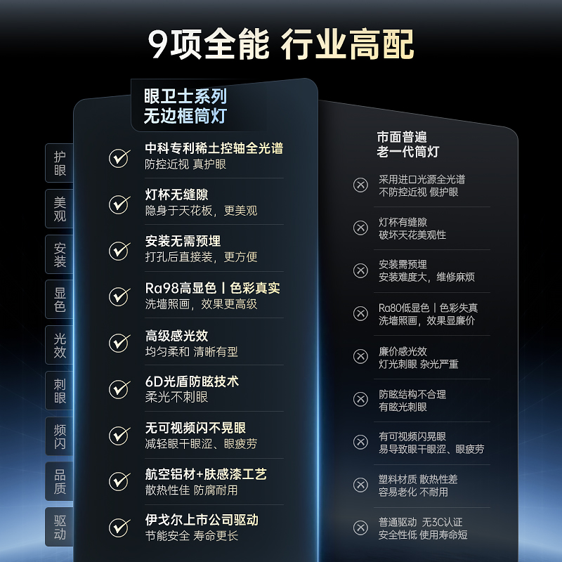 箭牌眼卫士中科稀土无边框筒灯隐形嵌入式 客厅深杯防眩洗墙射灯