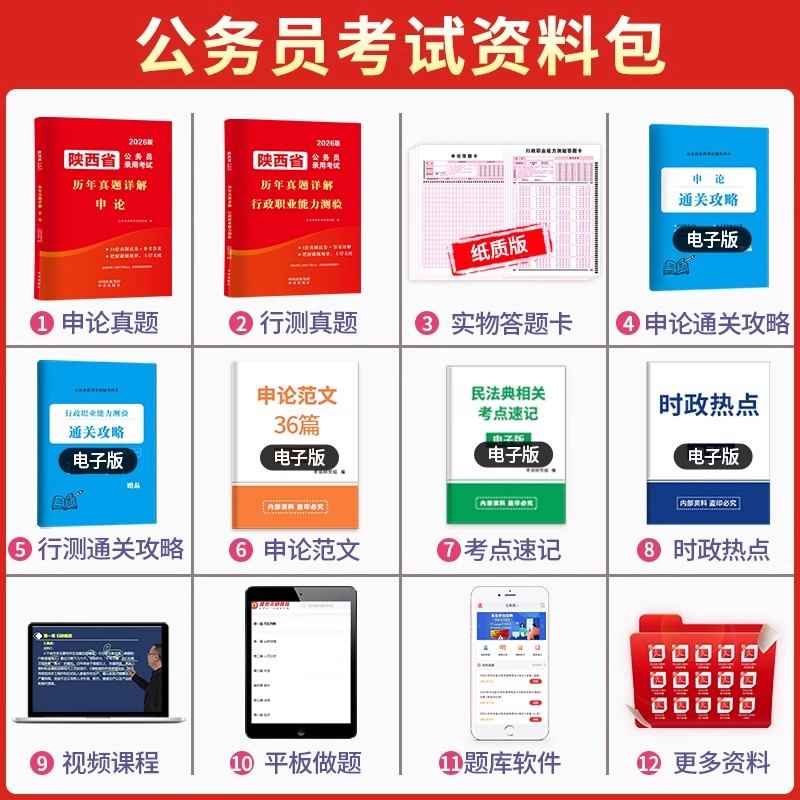 陕西省公务员考试省考2026新版 考试书历年真题试卷考公行测题库申论试卷子刷题模拟教材押题含答题卡视频课程电子资料