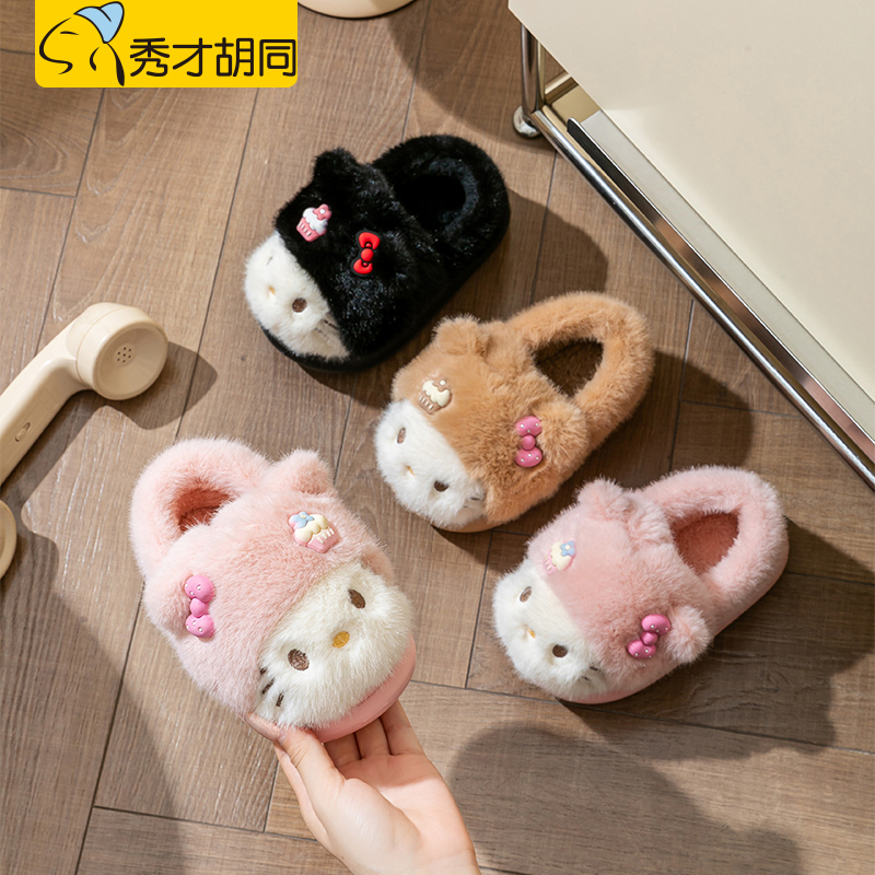 女宝小童男童防滑室内冬季 儿童棉拖鞋 女童猫咪婴幼儿居家宝宝拖鞋