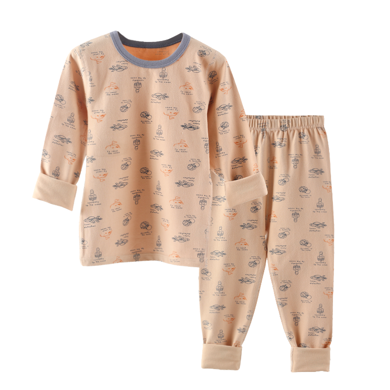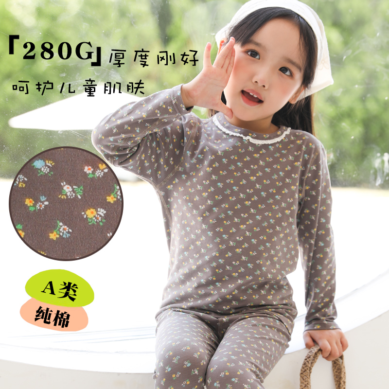 家居长袖 睡衣纯棉秋冬男女睡衣套装 宝宝秋衣秋裤 女童 250G清仓
