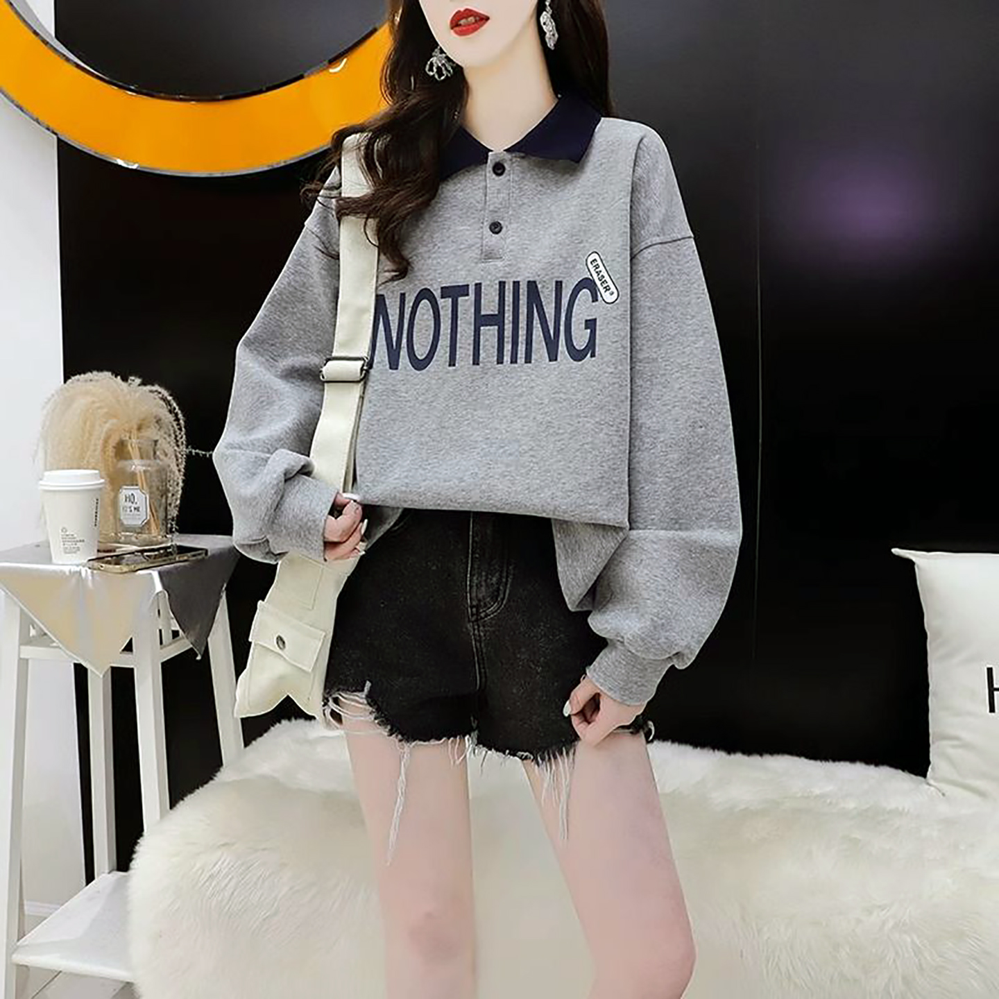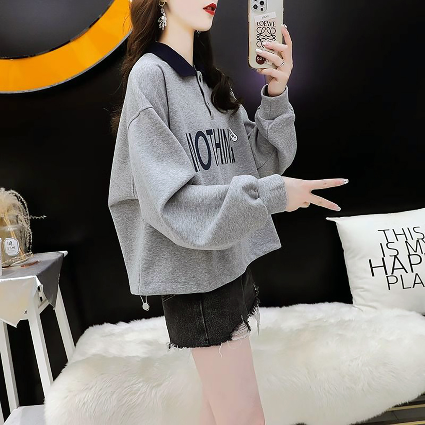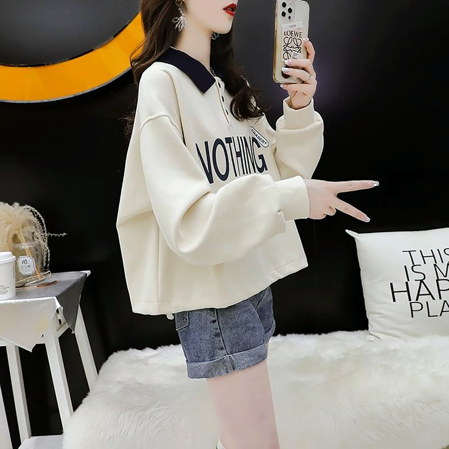 韩版 爆款 卫衣女春秋2025新款 洋气小个子短款 巨好看POLO领上衣 时尚