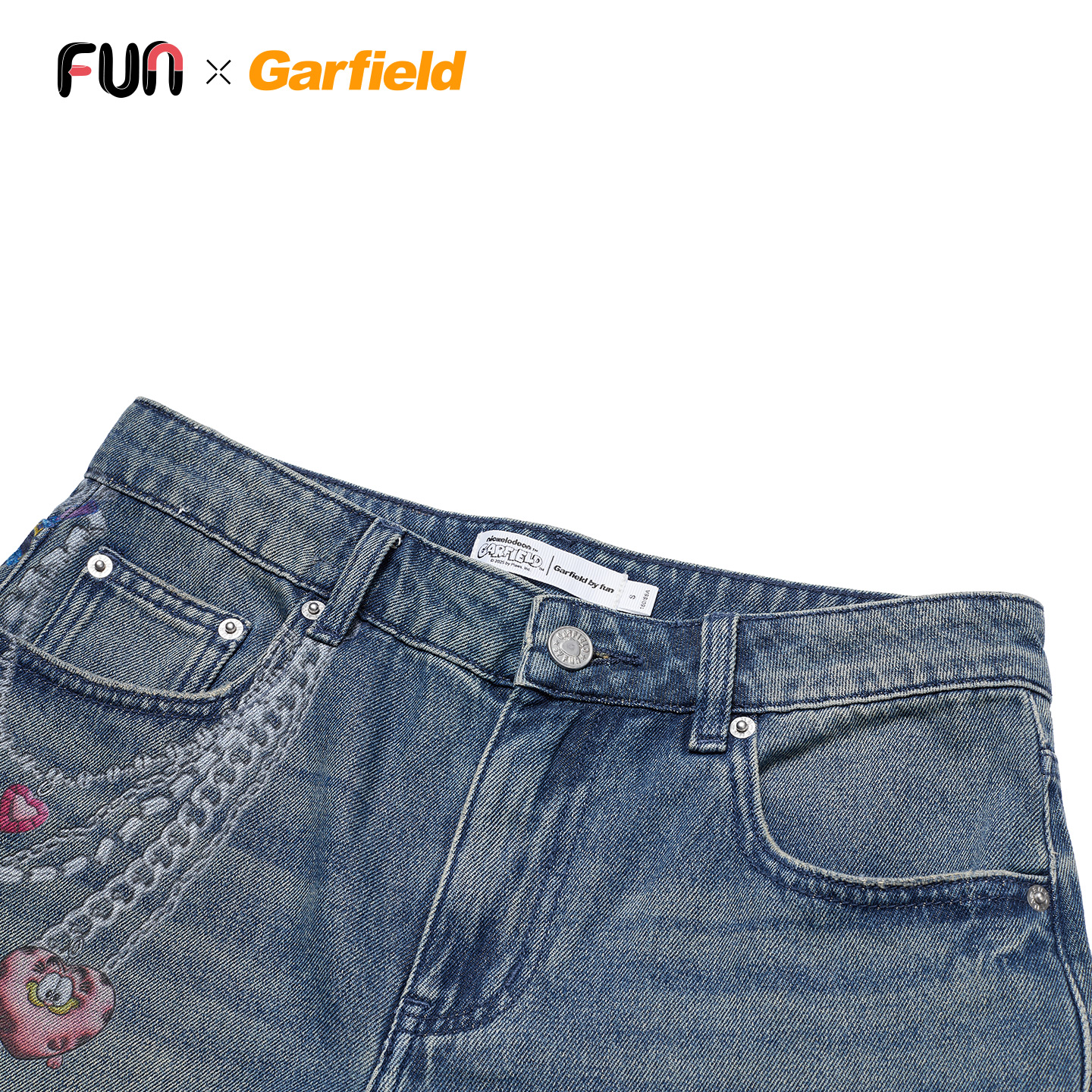 子女直筒裤 复古彩色链条印花牛仔裤 加菲猫联名美式 Fun2025秋冬季