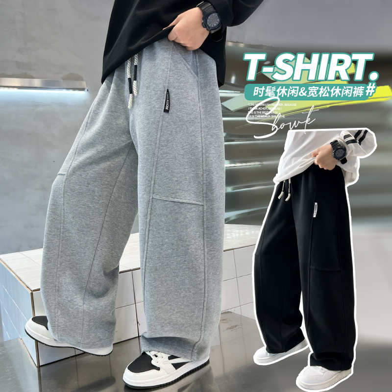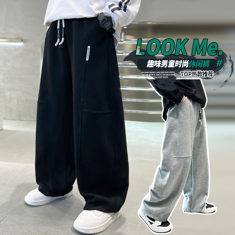 男童裤 男孩卫裤 子春秋2025新款 秋冬加绒阔腿裤 中大童运动裤 儿童装