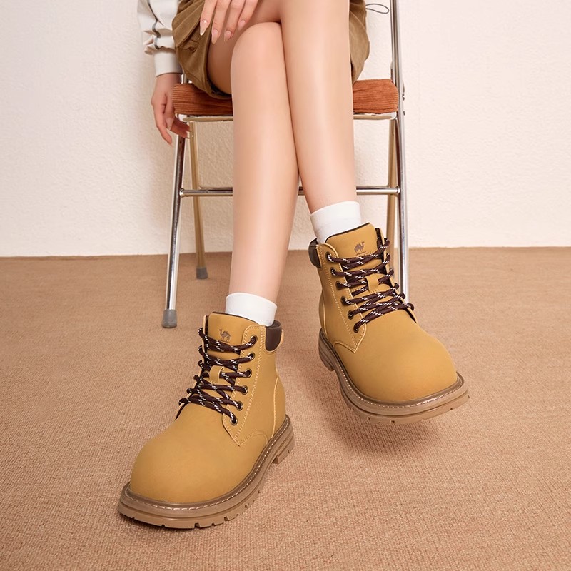户外工装 骆驼马丁靴女鞋 短靴子英伦风厚底爆款 新款 大黄靴 2025秋季