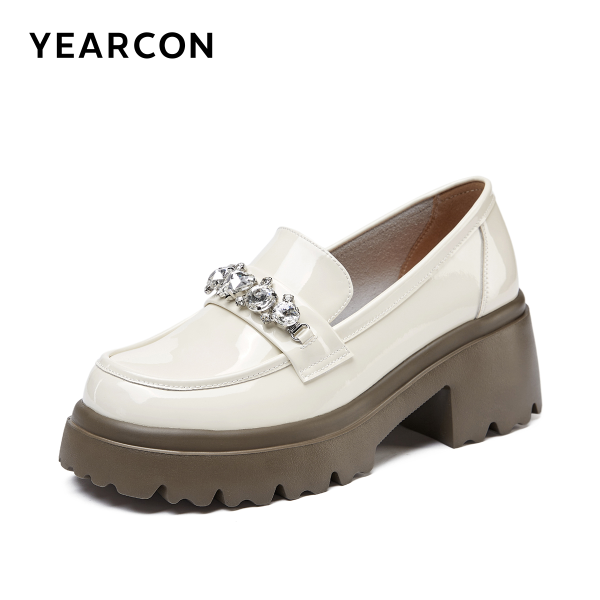 水钻玛丽珍单鞋 意尔康厚底乐福鞋 粗跟经典 英伦风小皮鞋 女2025秋款