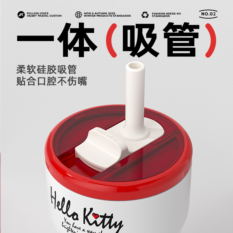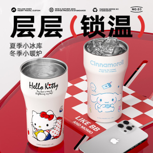 hellokitty保温杯女生高颜值吸管水杯大容量新款 咖啡可爱杯子礼物