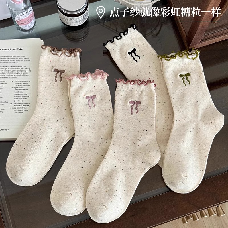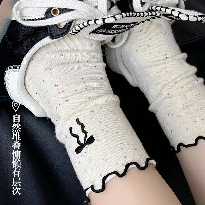棉袜夏季 木耳边袜子女款 纯棉春秋无骨短袜防臭吸汗中筒袜配小皮鞋