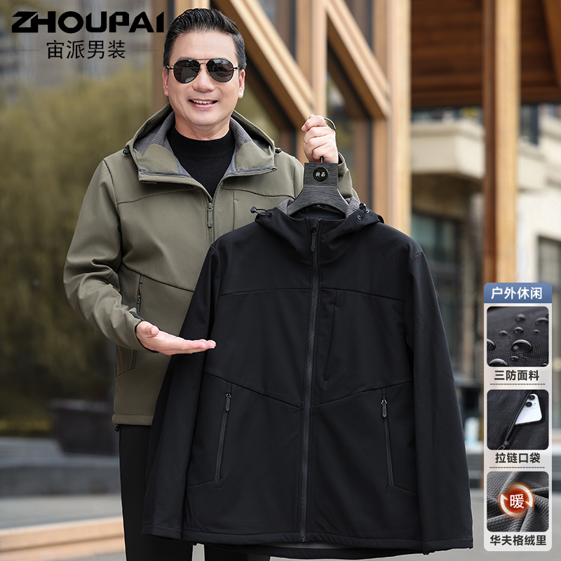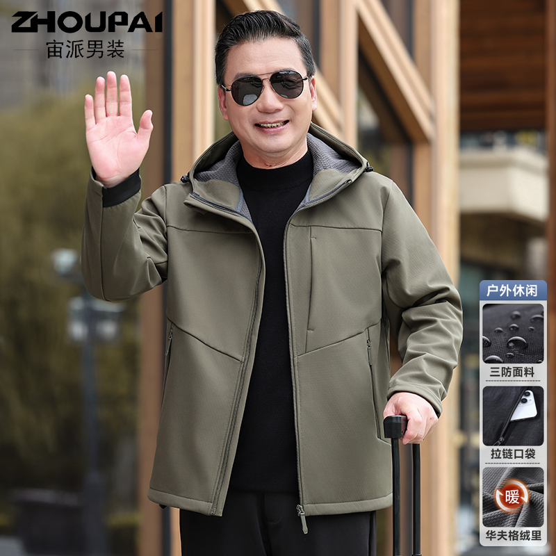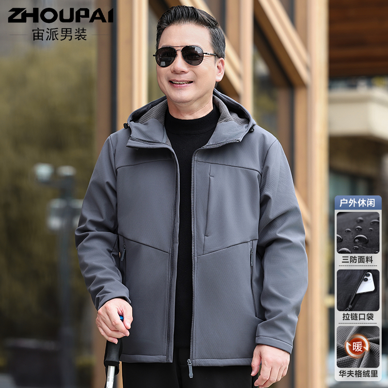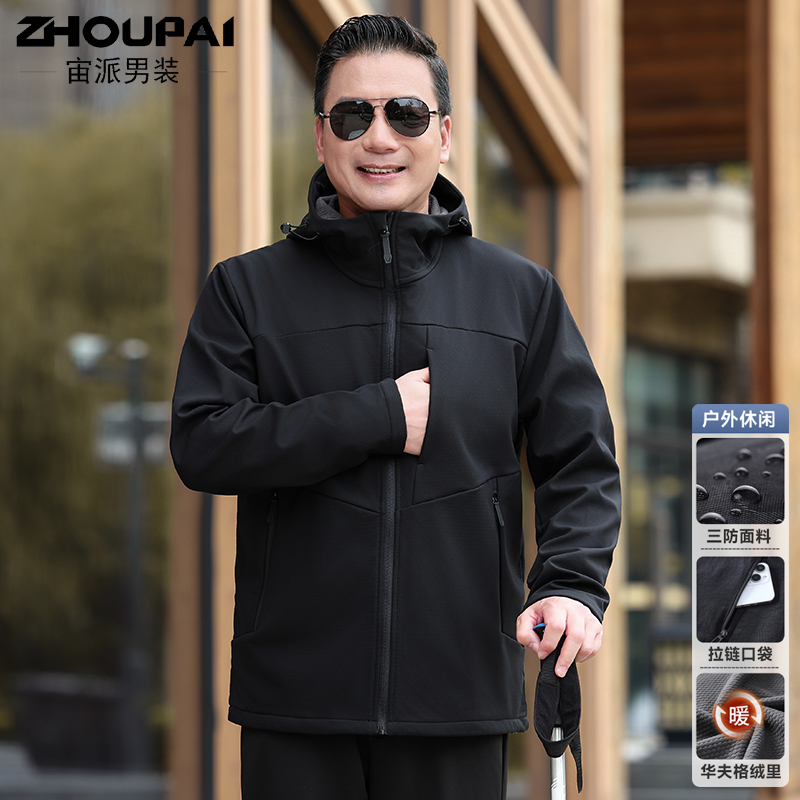男款 软壳冲锋衣中老年春秋季 户外爷爷外套 夹克中年男士 爸爸秋冬款