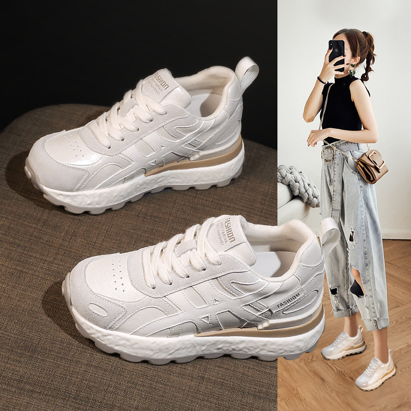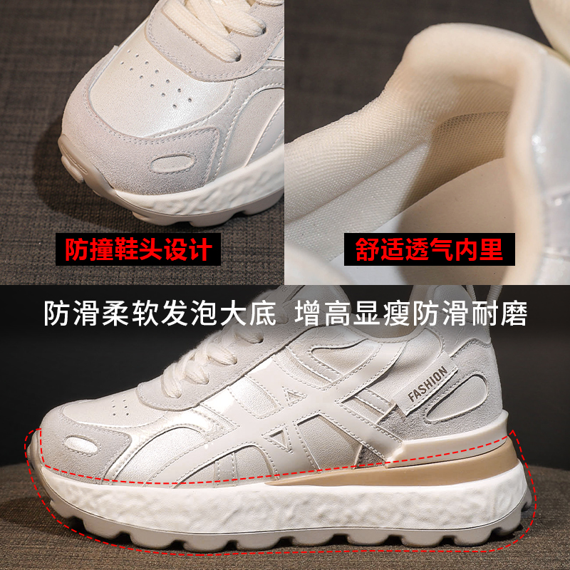 加绒保暖休闲厚底阿甘小白鞋 新款 女秋冬季 2025年超火内增高老爹鞋