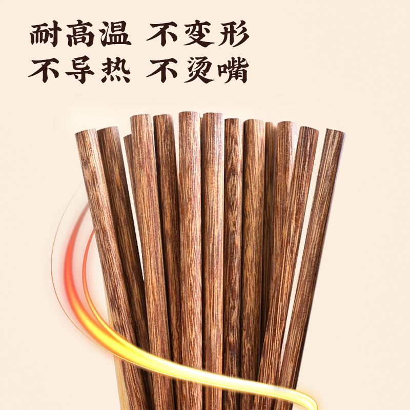 筷子家用抗菌防霉实木高档鸡翅木无漆无蜡快子防滑耐高温家庭专用