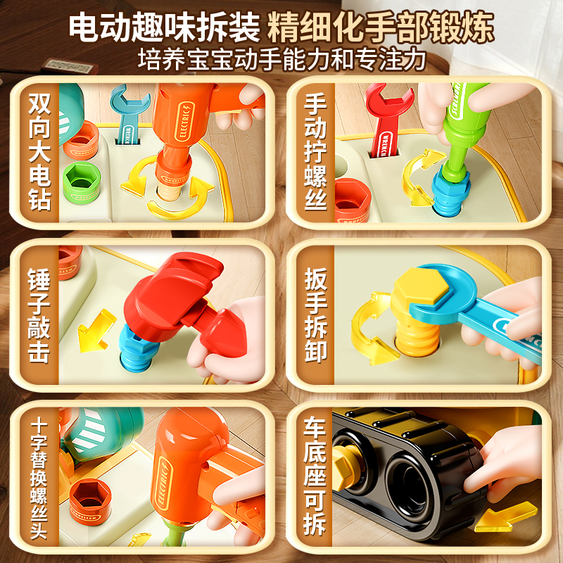 宝宝拧打螺丝玩具男孩电钻益智3到6可拆卸组装 工程车宝宝生日礼物