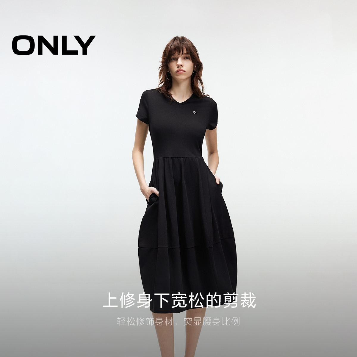 帝柔帝柔黑色连衣裙2025秋季 显瘦通勤 套头高腰休闲腰带简约大码