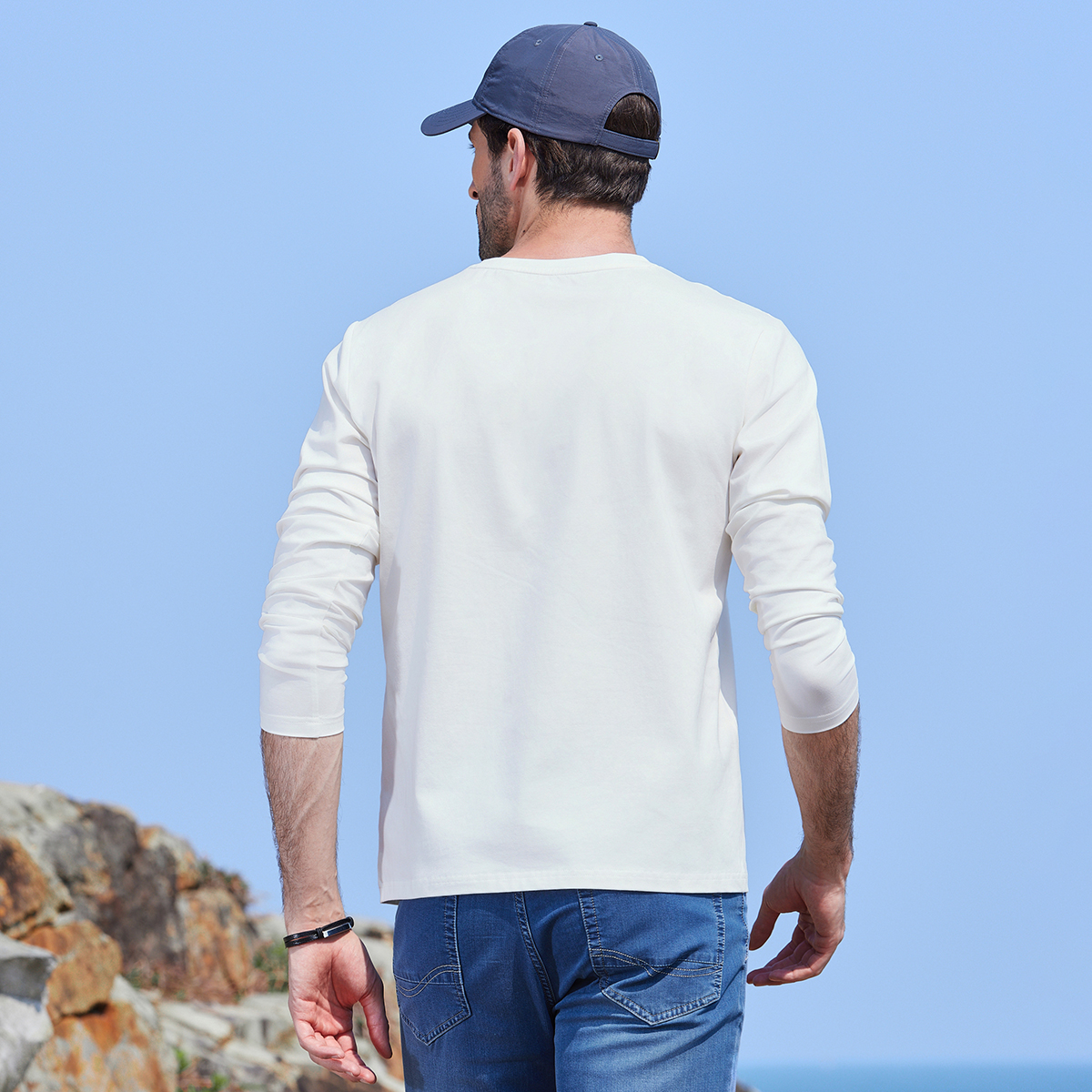 春秋宽松户外运动T恤 t恤长袖 JEEP 吉普新疆长绒棉潮流印花男士