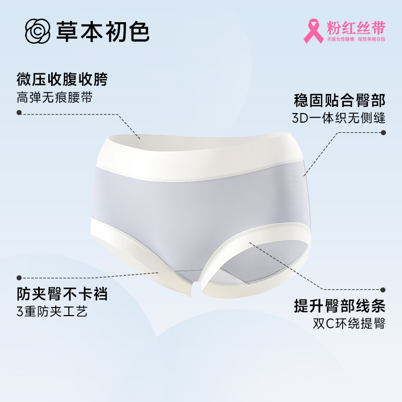 裸感无痕女士内裤 草本初色 中腰轻薄三角裤 3条装 桑蚕丝乳酸裤