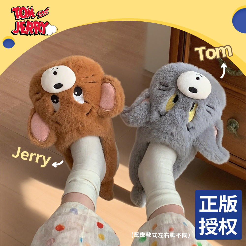 学生居家男女防滑情侣棉拖鞋 猫和老鼠毛毛鞋 休闲正版 趣味汤姆冬季
