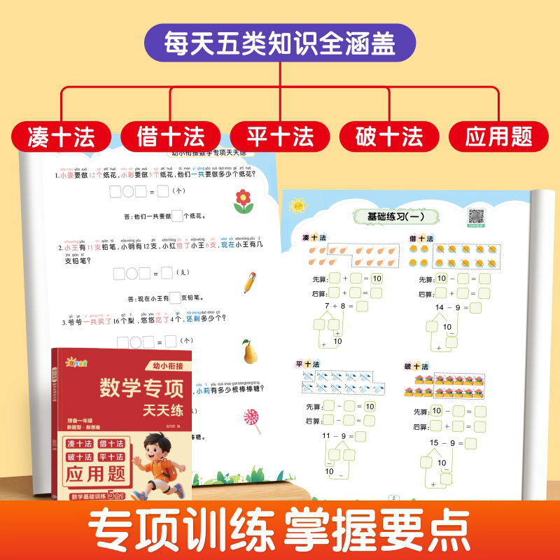 幼小衔接教材全套一日一练数学专项天天练幼升小预备一年级数学思维训练凑十法借十法平十法破十法应用题数学基础训练五合一练习册