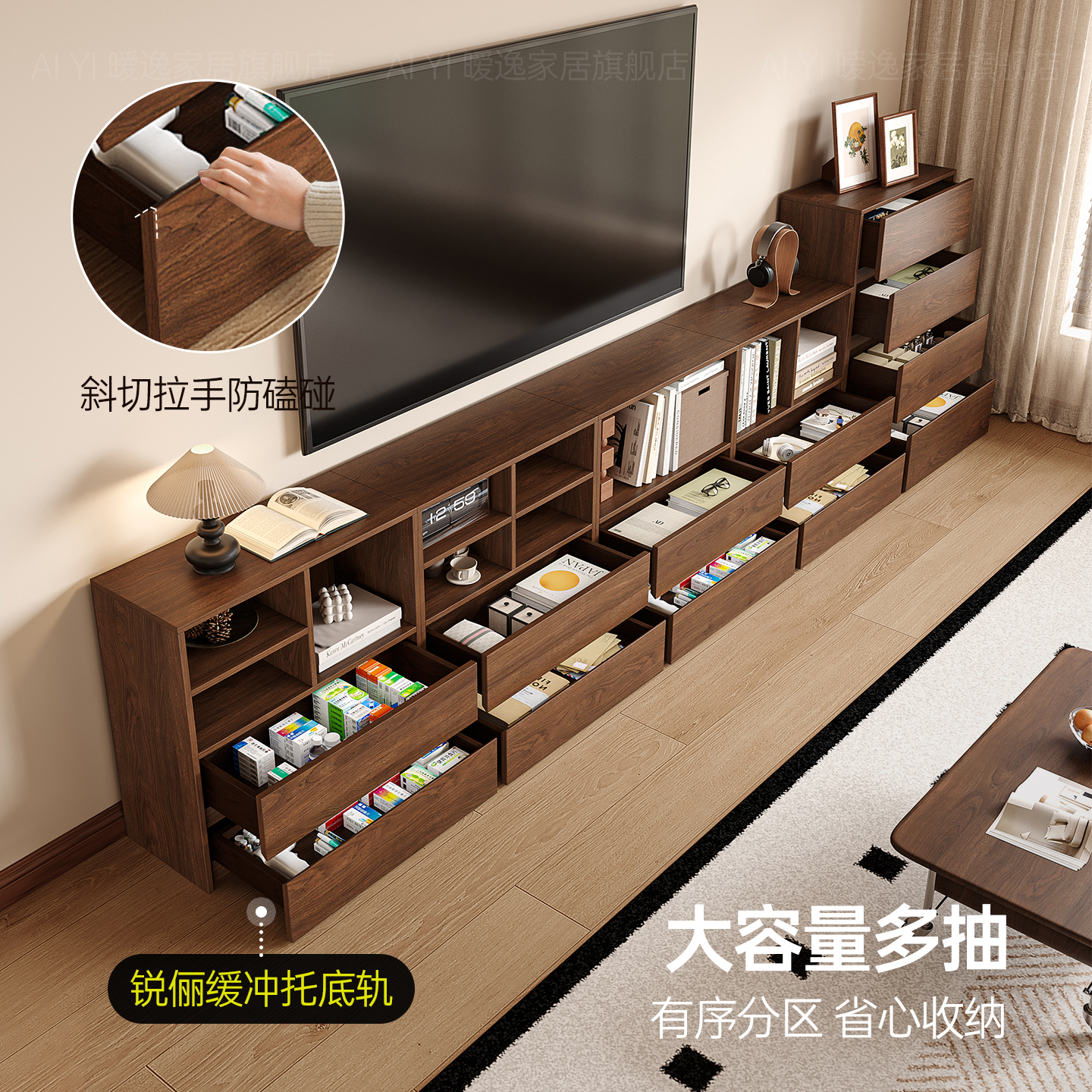 实木电视柜现代简约小户型客厅储物柜轻奢多功能玻璃收纳柜落地柜