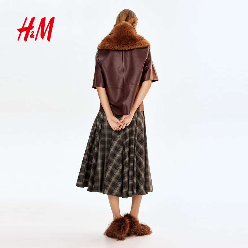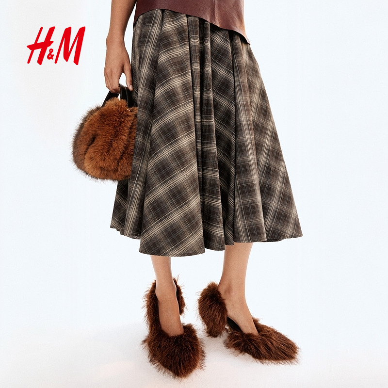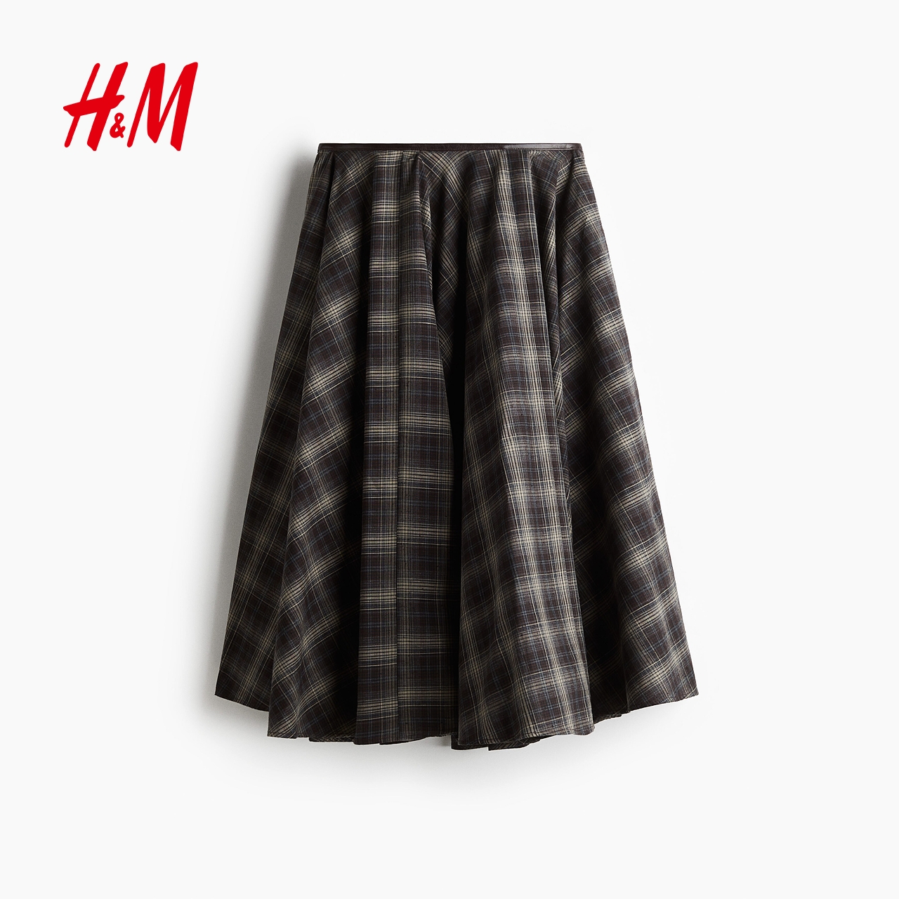 半身裙2025新款 HM女装 秋宽松格纹礼服伞裙1307335 徐若晗同款