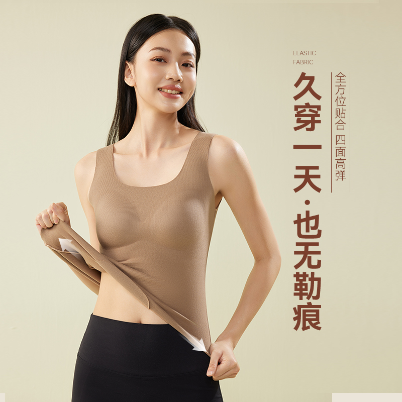 古今秋季 打底 羊毛蚕丝保暖背心女无痕聚拢带胸垫文胸发热加绒修身