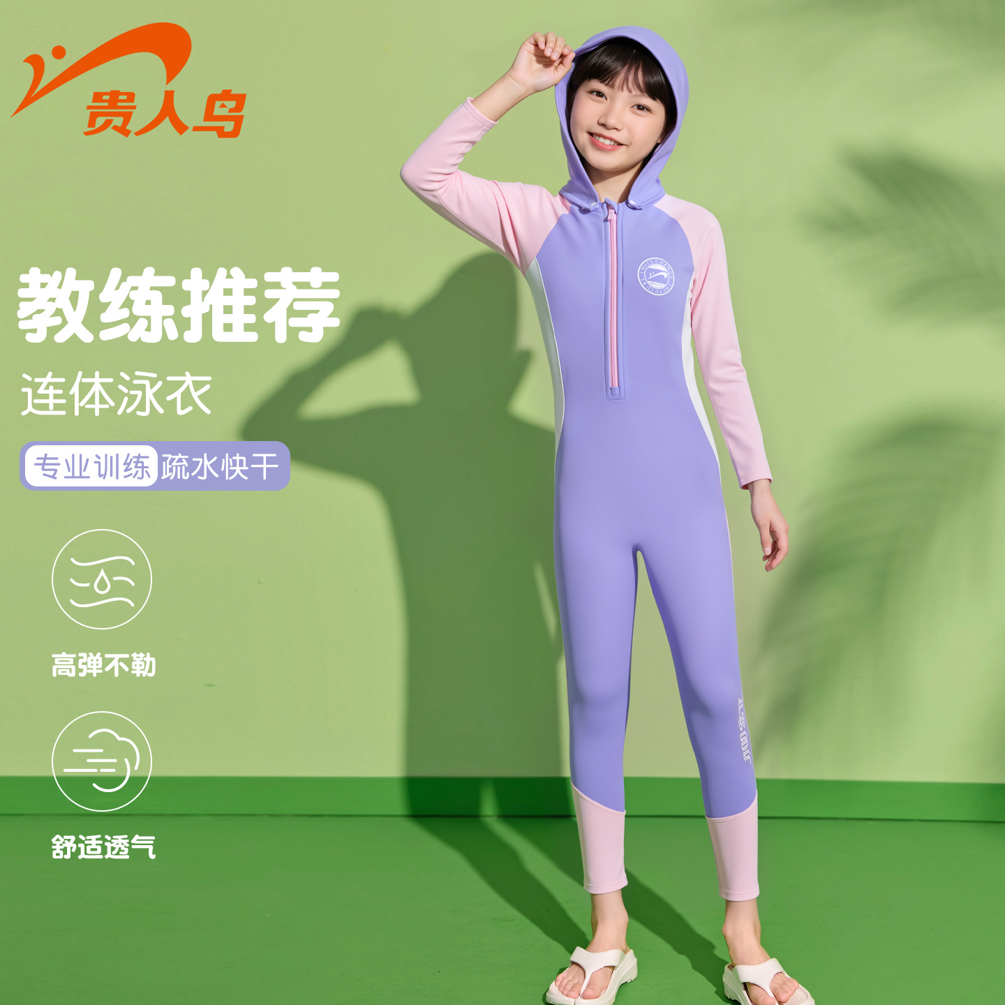 贵人鸟儿童泳衣女童中大童连体专业训练游泳衣2025新款 全 女孩泳装
