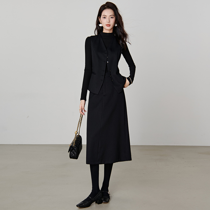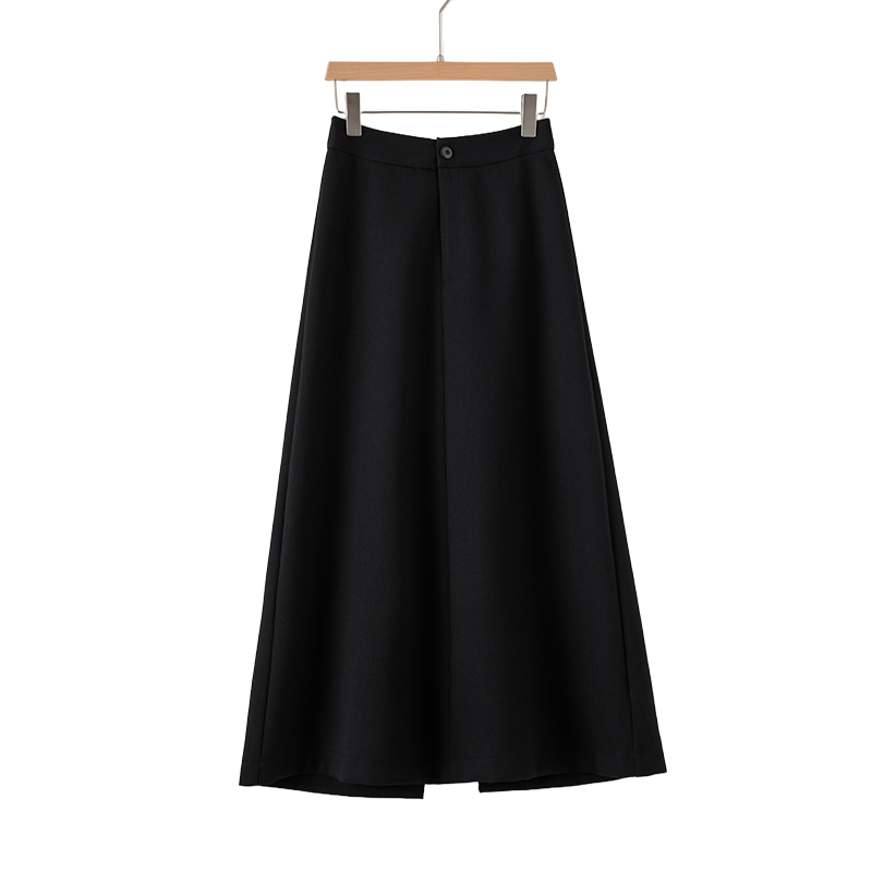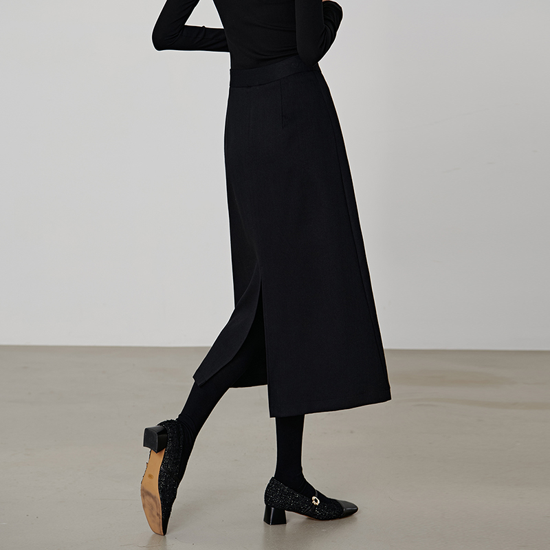 晚白2025年秋新款 纯色高腰裙子分叉设计利落大方百搭大摆长裙