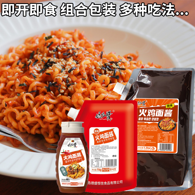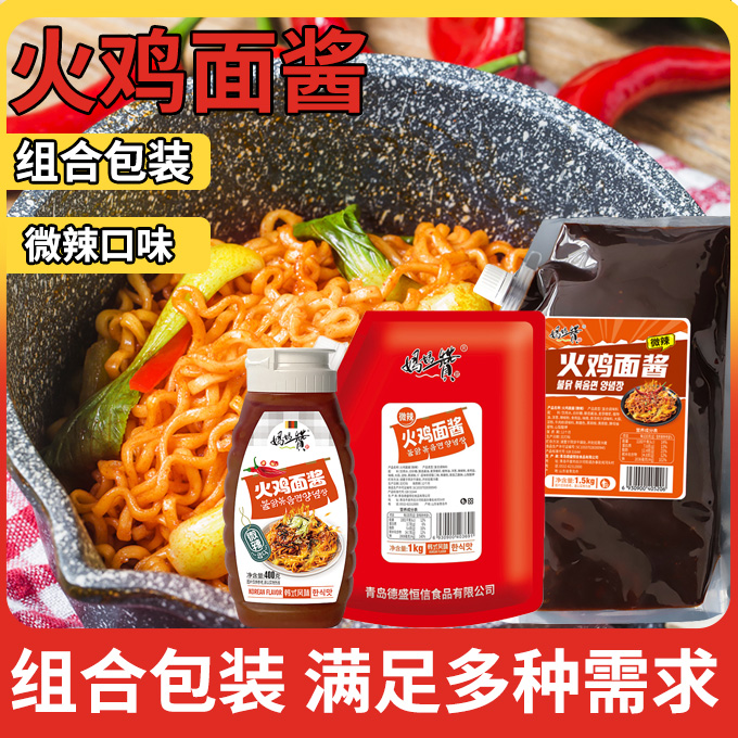火鸡面酱料微辣商用摆摊韩式 甜辣椒酱拌面条韩国下饭不辣养三袋装