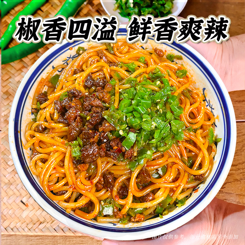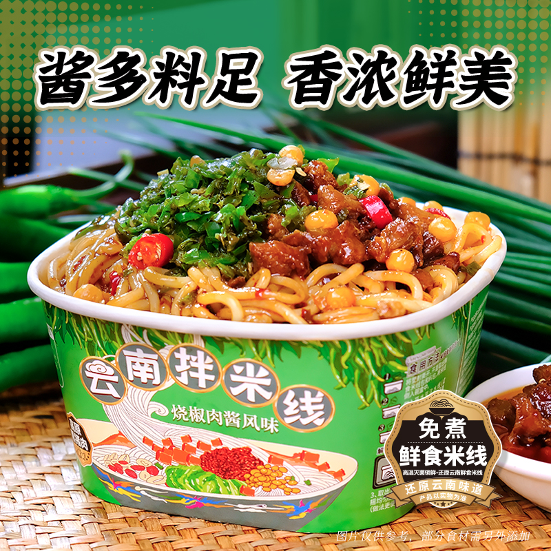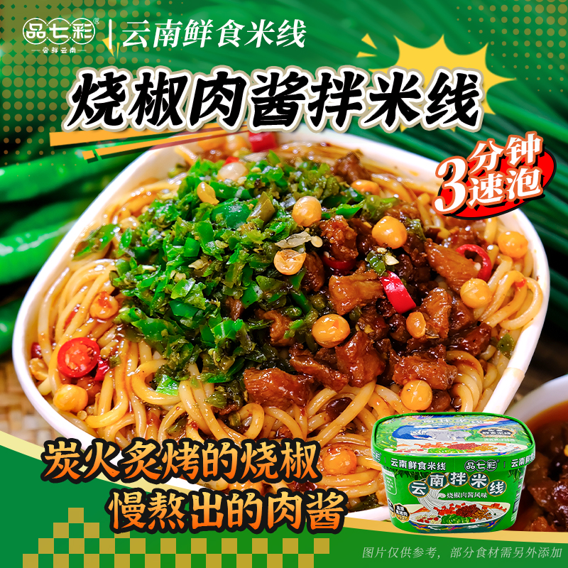 云南烧椒肉酱拌米线免煮冲泡食品方便速食米粉宵夜桶装 品七彩