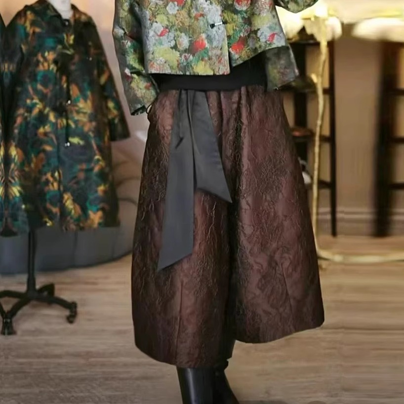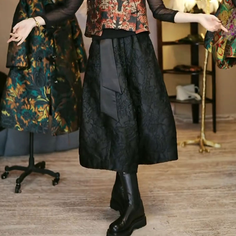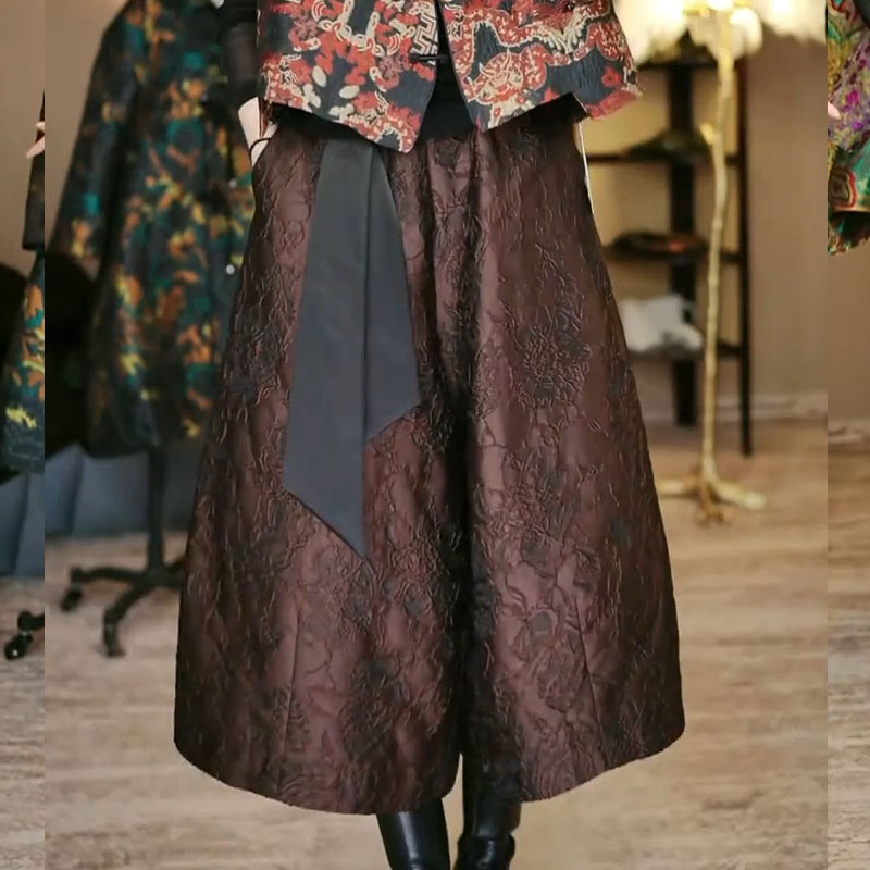 高端女春秋九分百搭阔腿裤 高腰洋气灯笼裤 国风提花复古花苞裤 大码