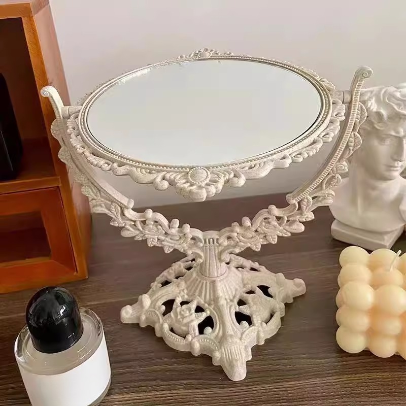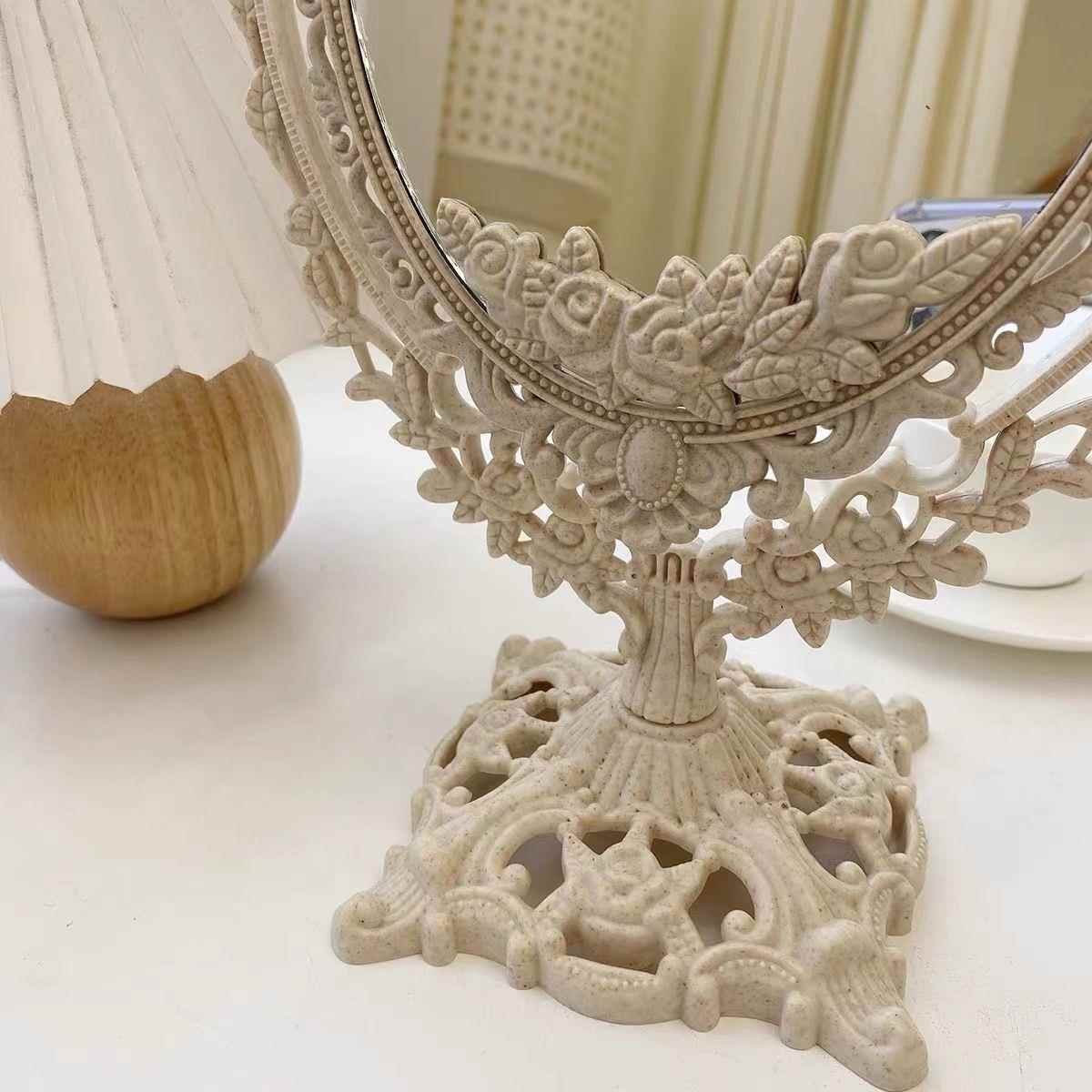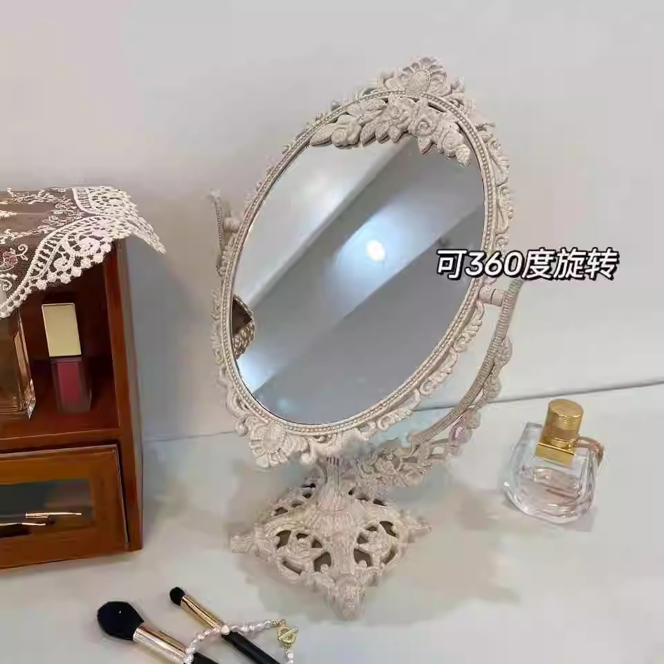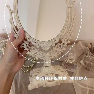 镜子化妆镜家用复古ins桌面便携双面镜学生宿舍可旋转欧式 梳妆镜