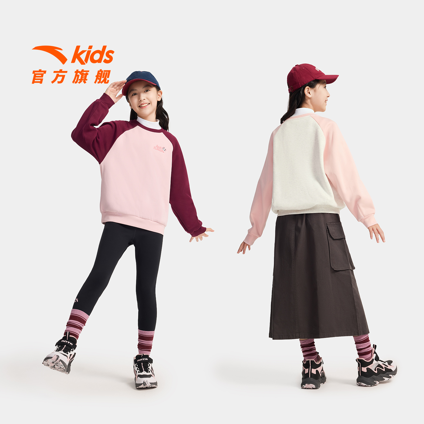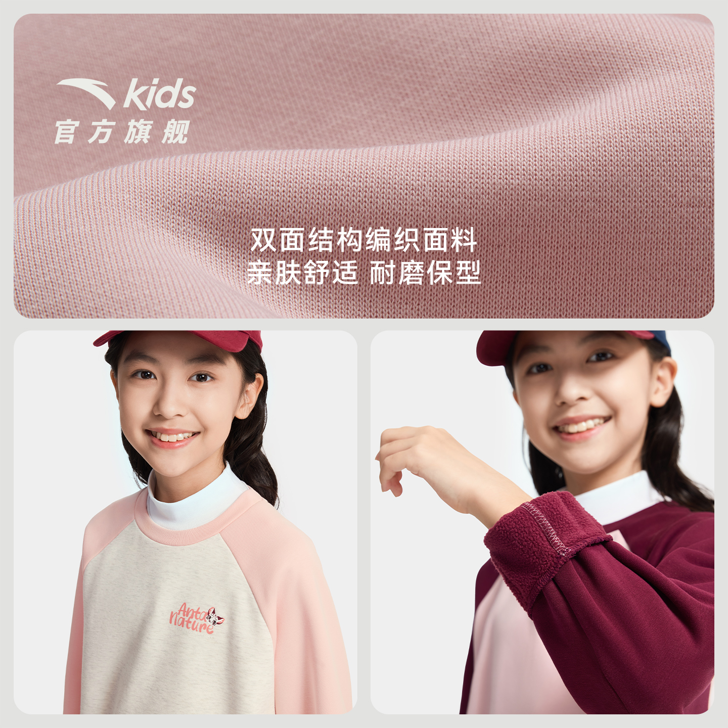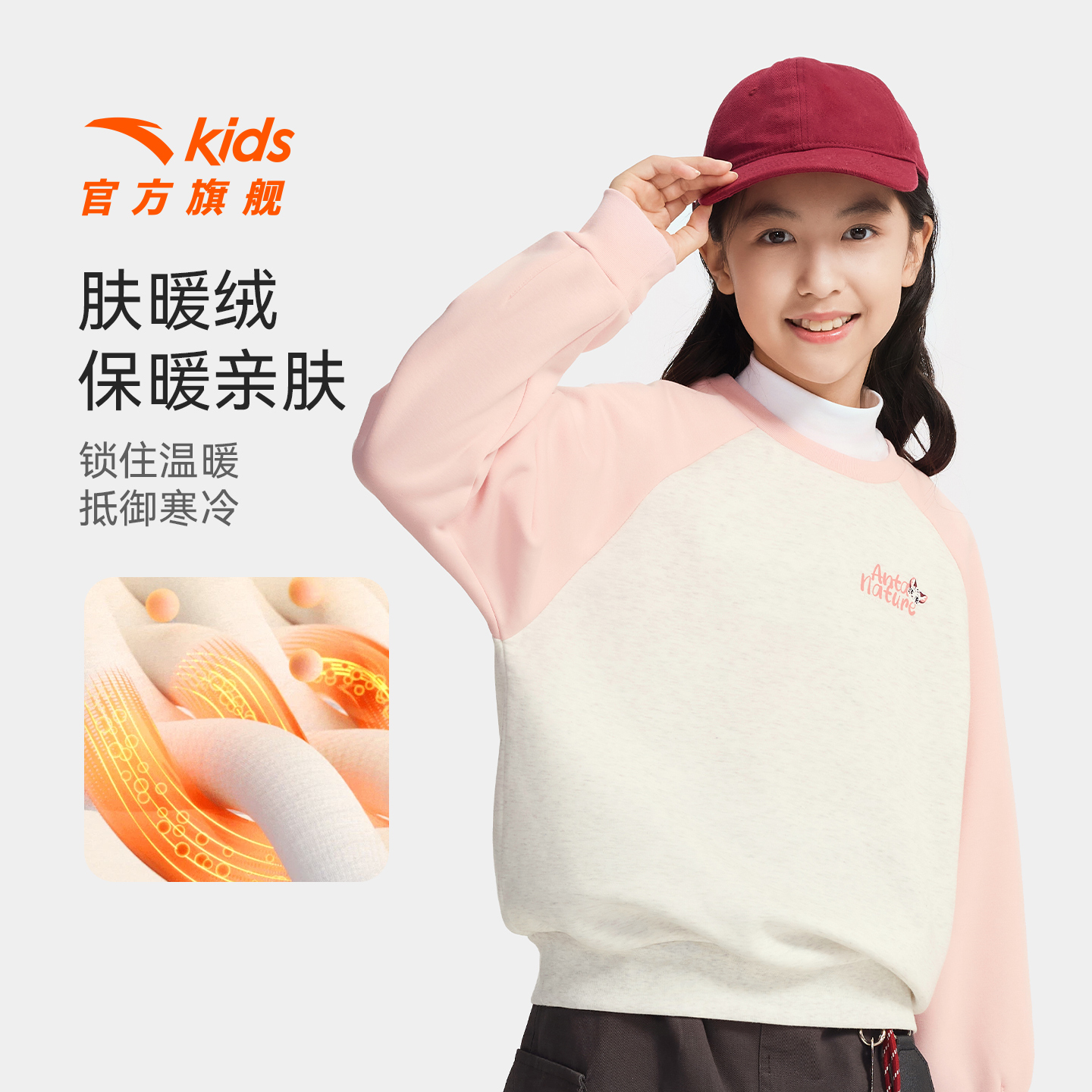 舒适保暖中大童运动长袖 安踏儿童女童卫衣加绒套头衫 2025秋冬新款