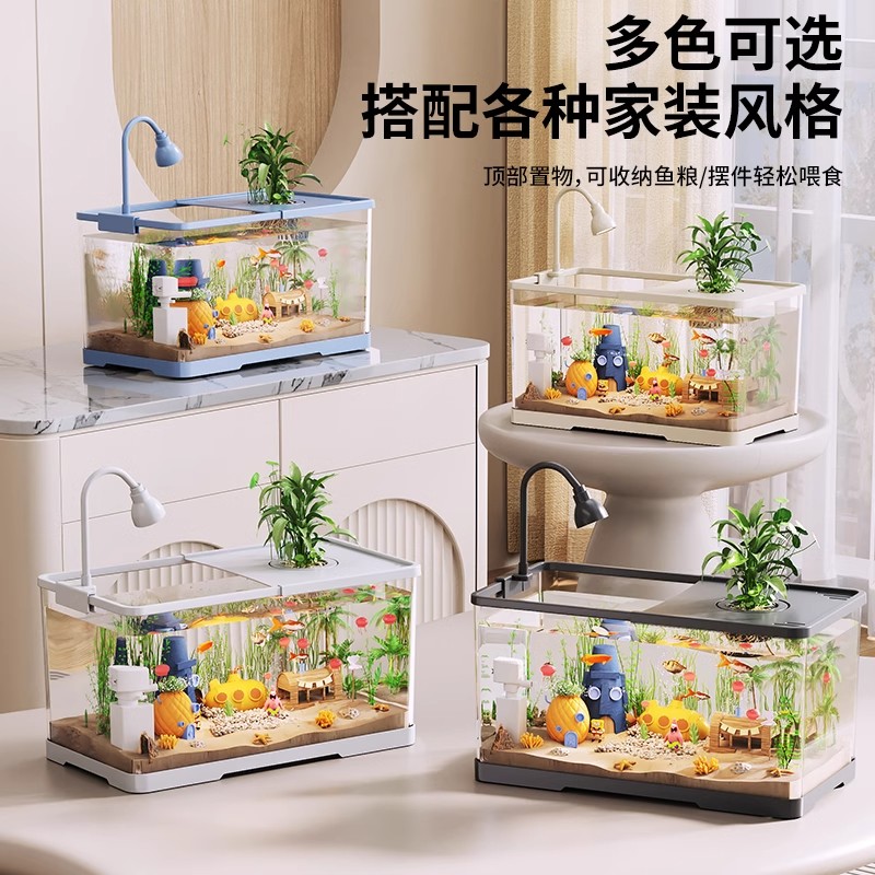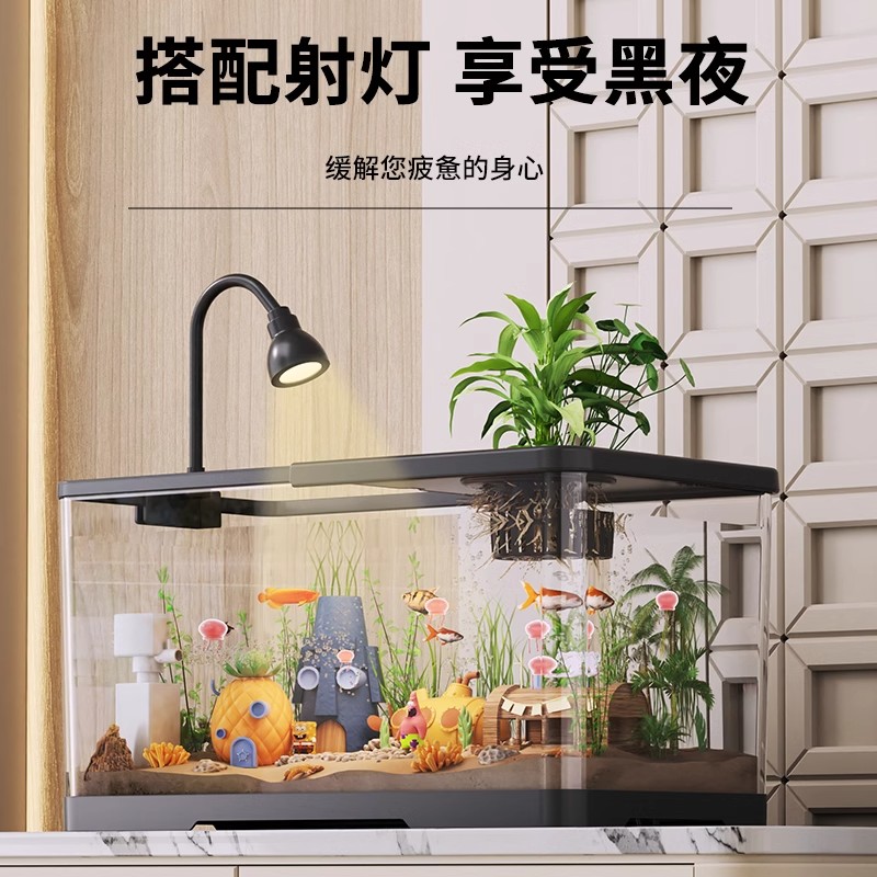 日本鱼缸家用生态水族箱客厅带盖透明金鱼饲养缸小型造景桌面缸新