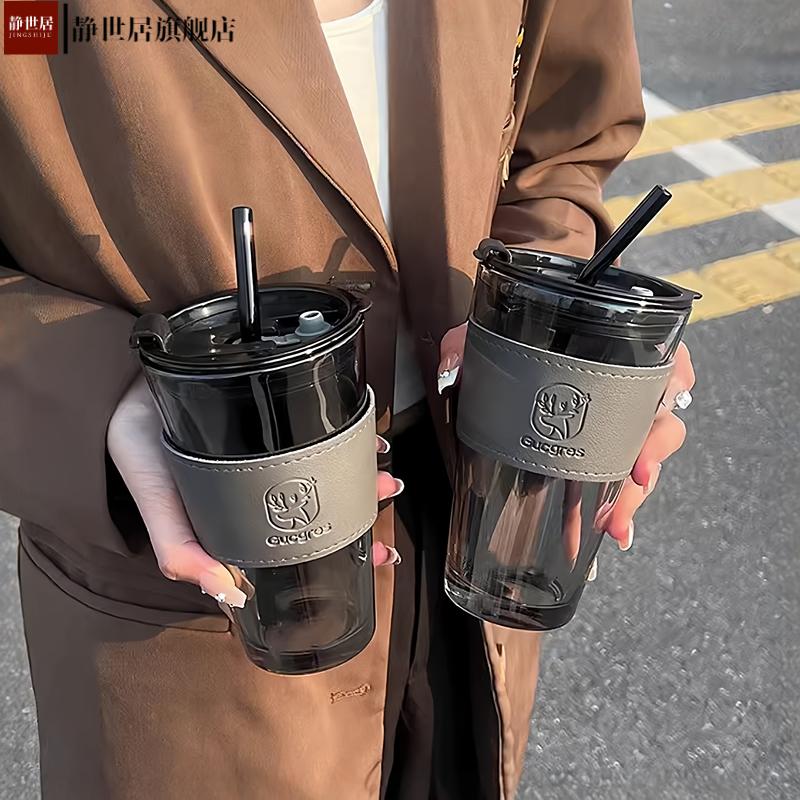 高颜值大肚双饮水杯保温塑料吸管杯吨吨杯大容量耐高温文化创意杯