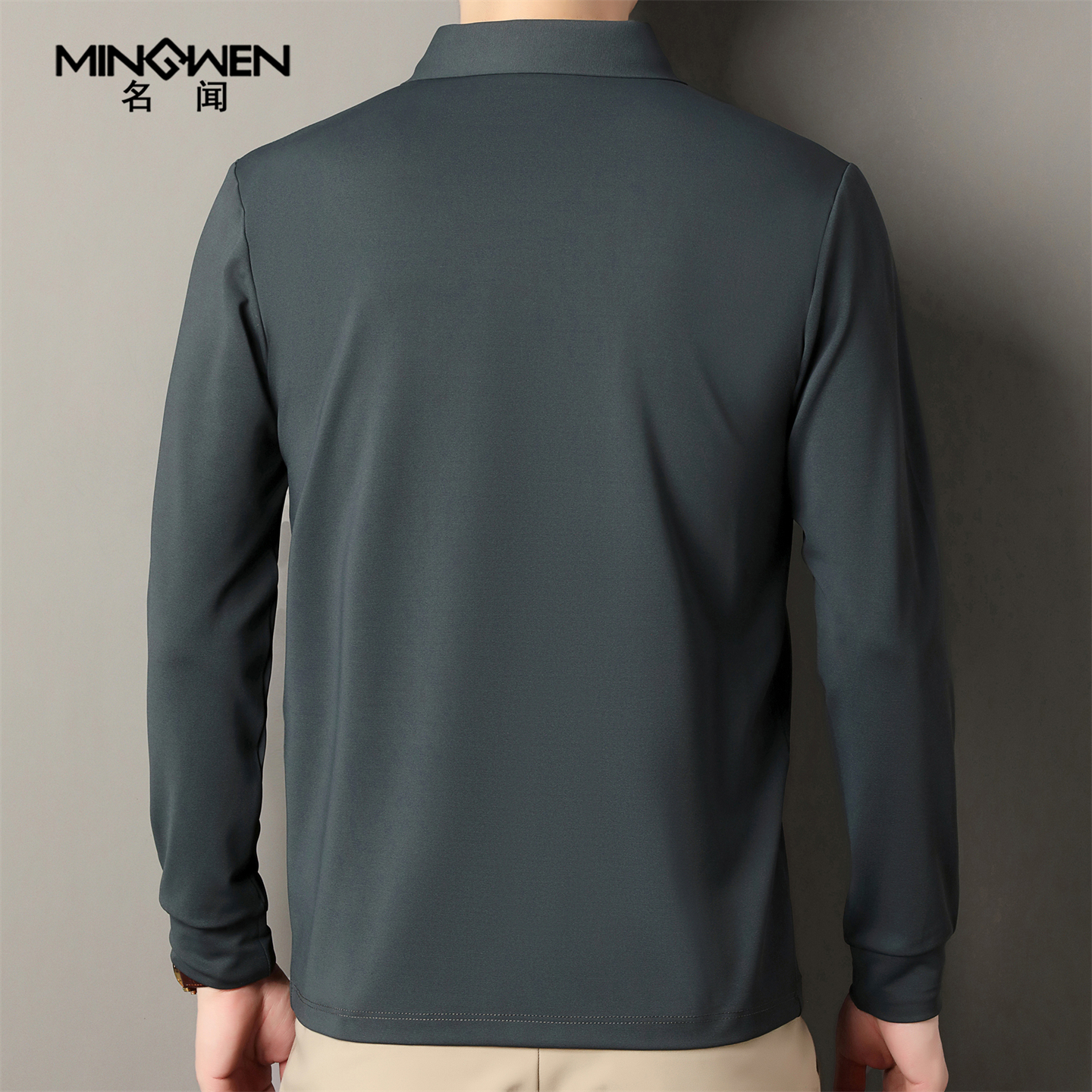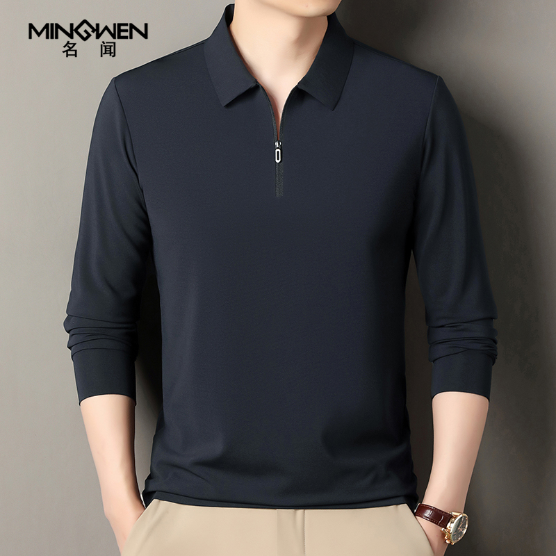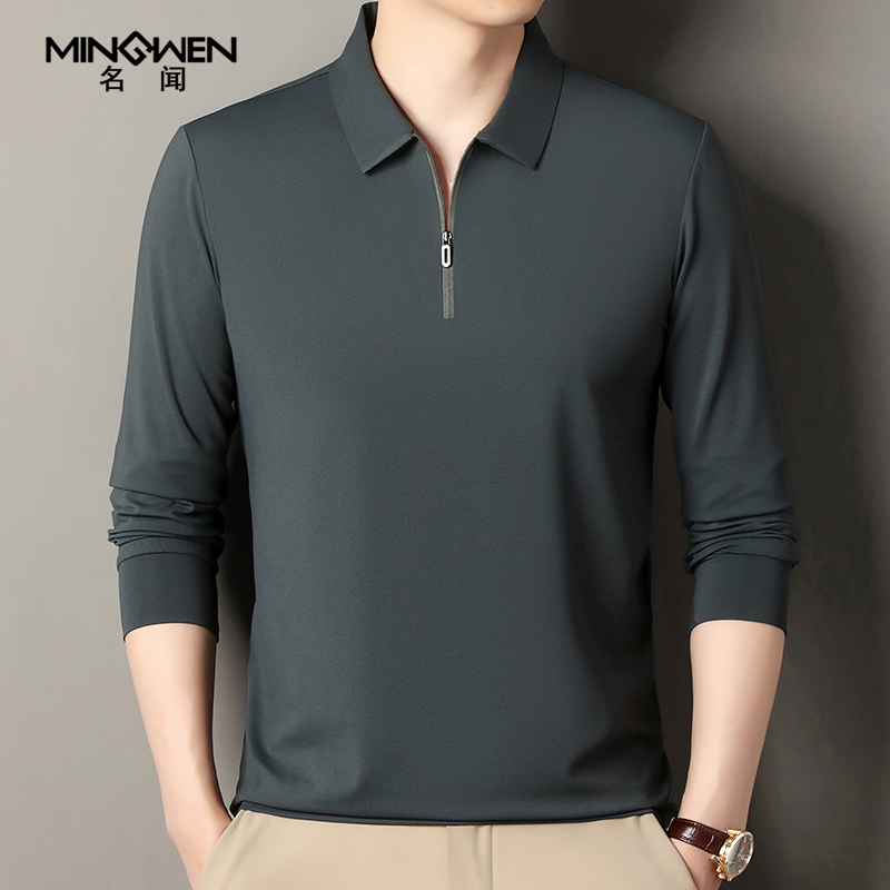 休闲宽松打底中年爸爸半拉链翻领polo衫 冰丝长袖 t恤男春秋薄时尚